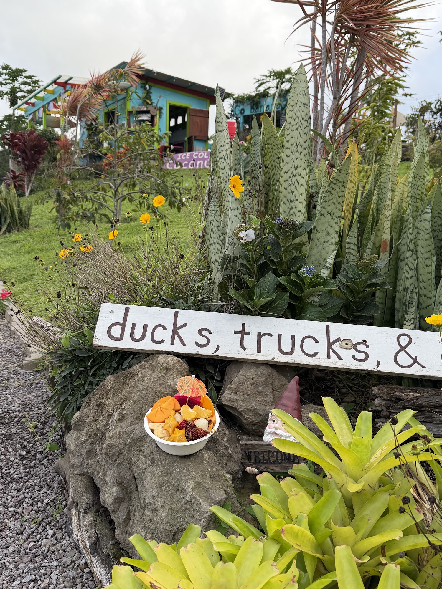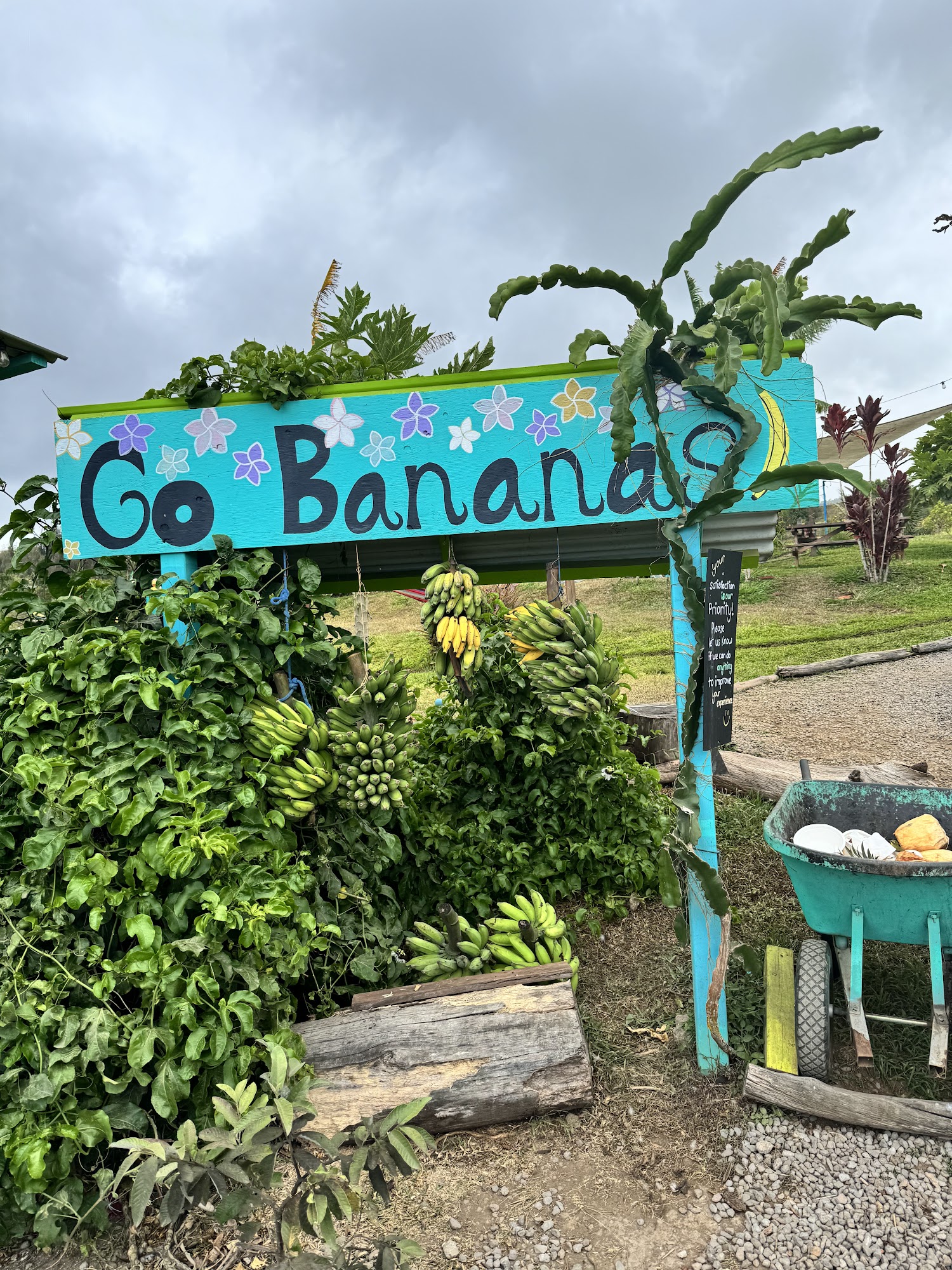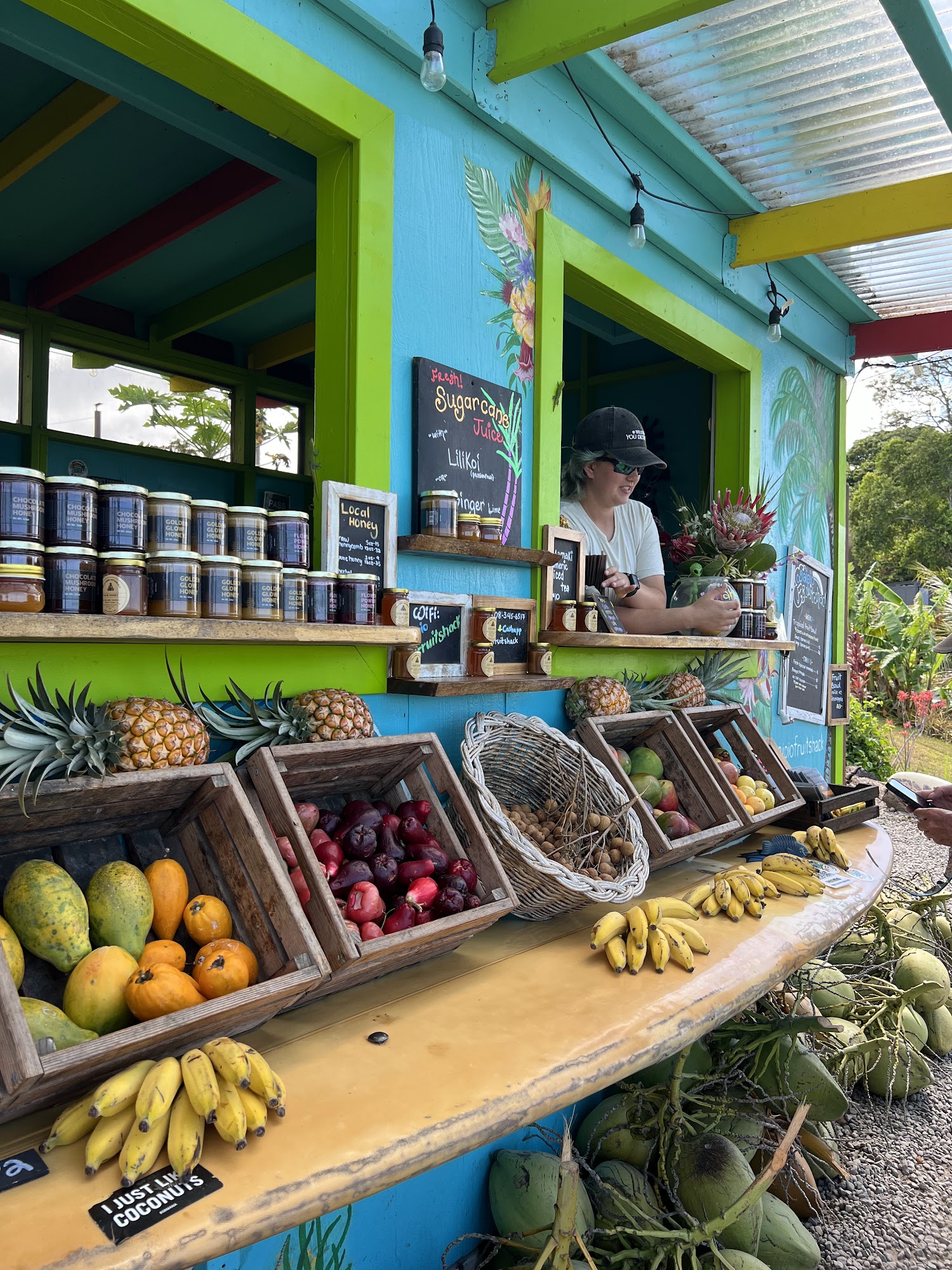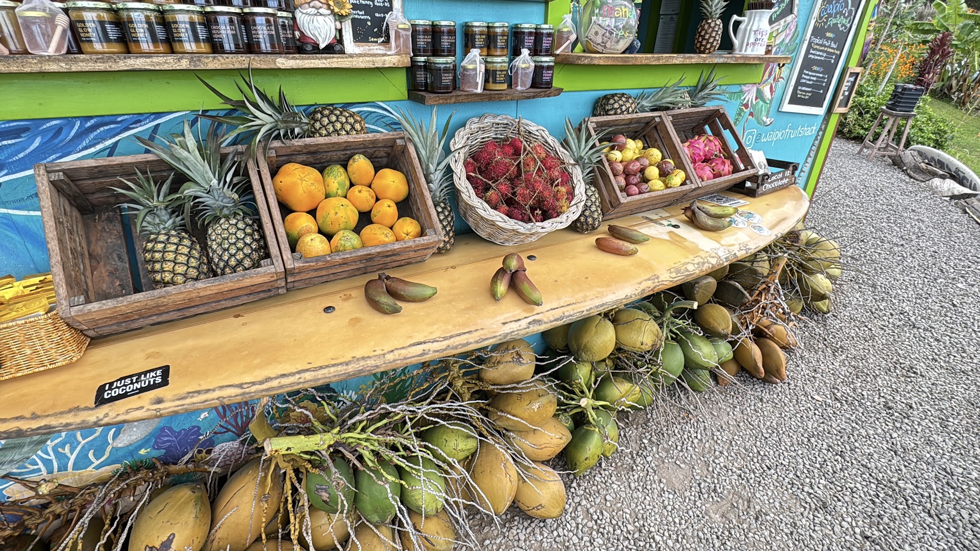 This is the coolest fruit stand on the island by far. Great music playing, ducks follow you around to pick up anything you drop, incredible view, and of course great fruit! This place has a great vibe!