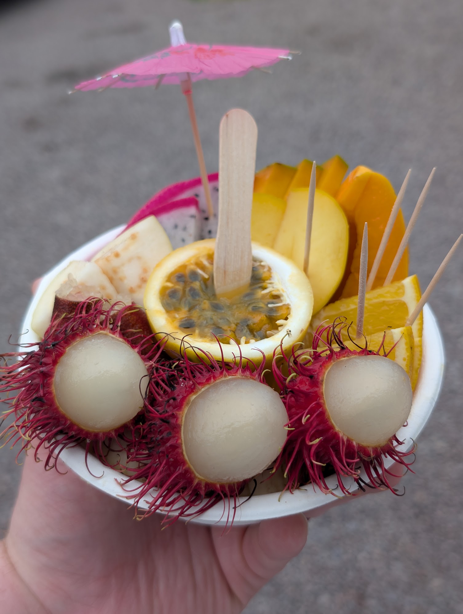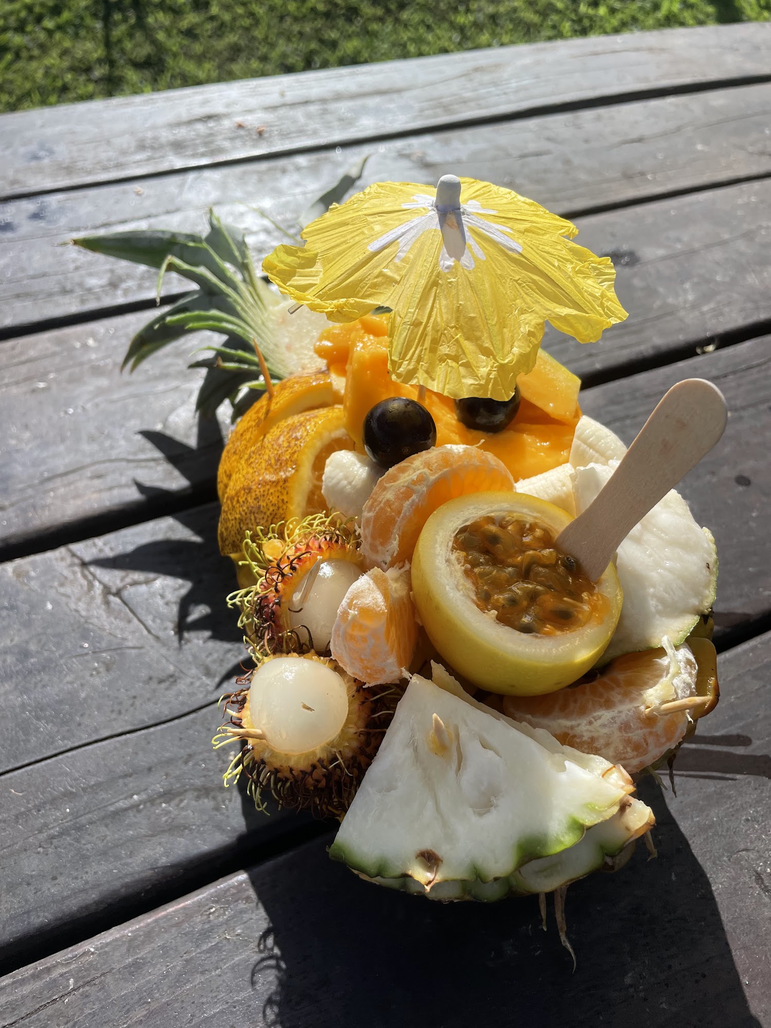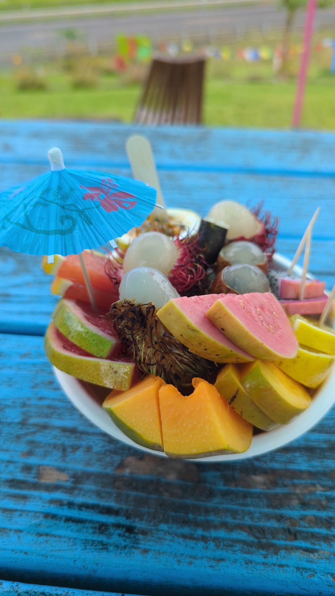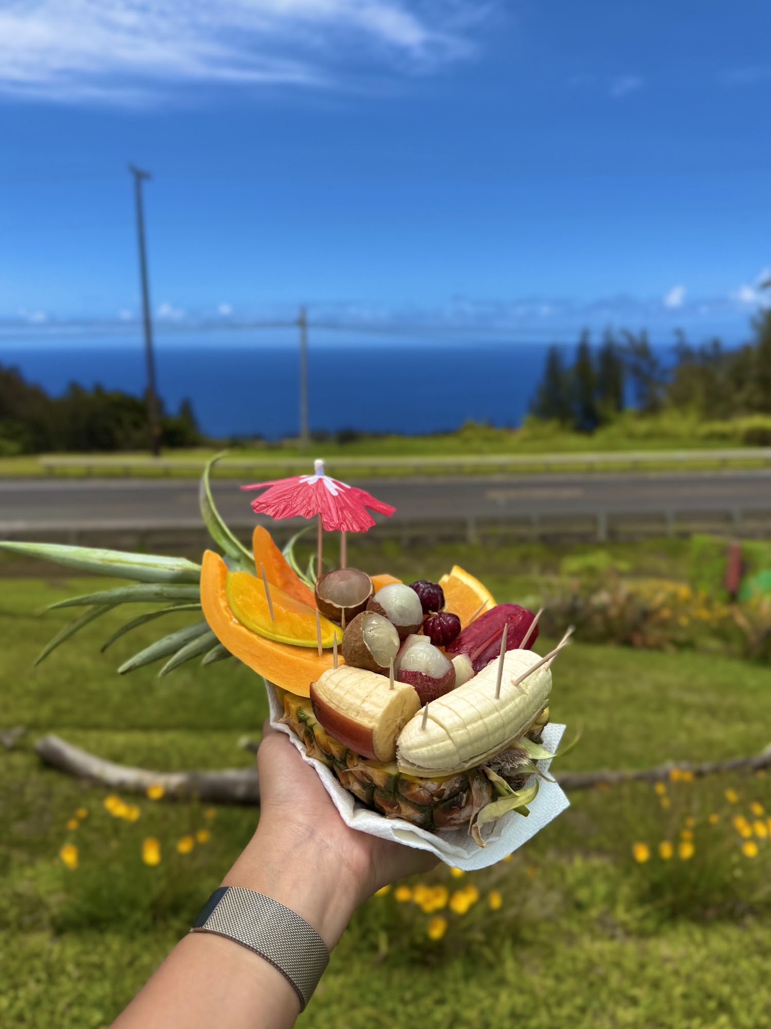 This is the coolest fruit stand on the island by far. Great music playing, ducks follow you around to pick up anything you drop, incredible view, and of course great fruit! This place has a great vibe!