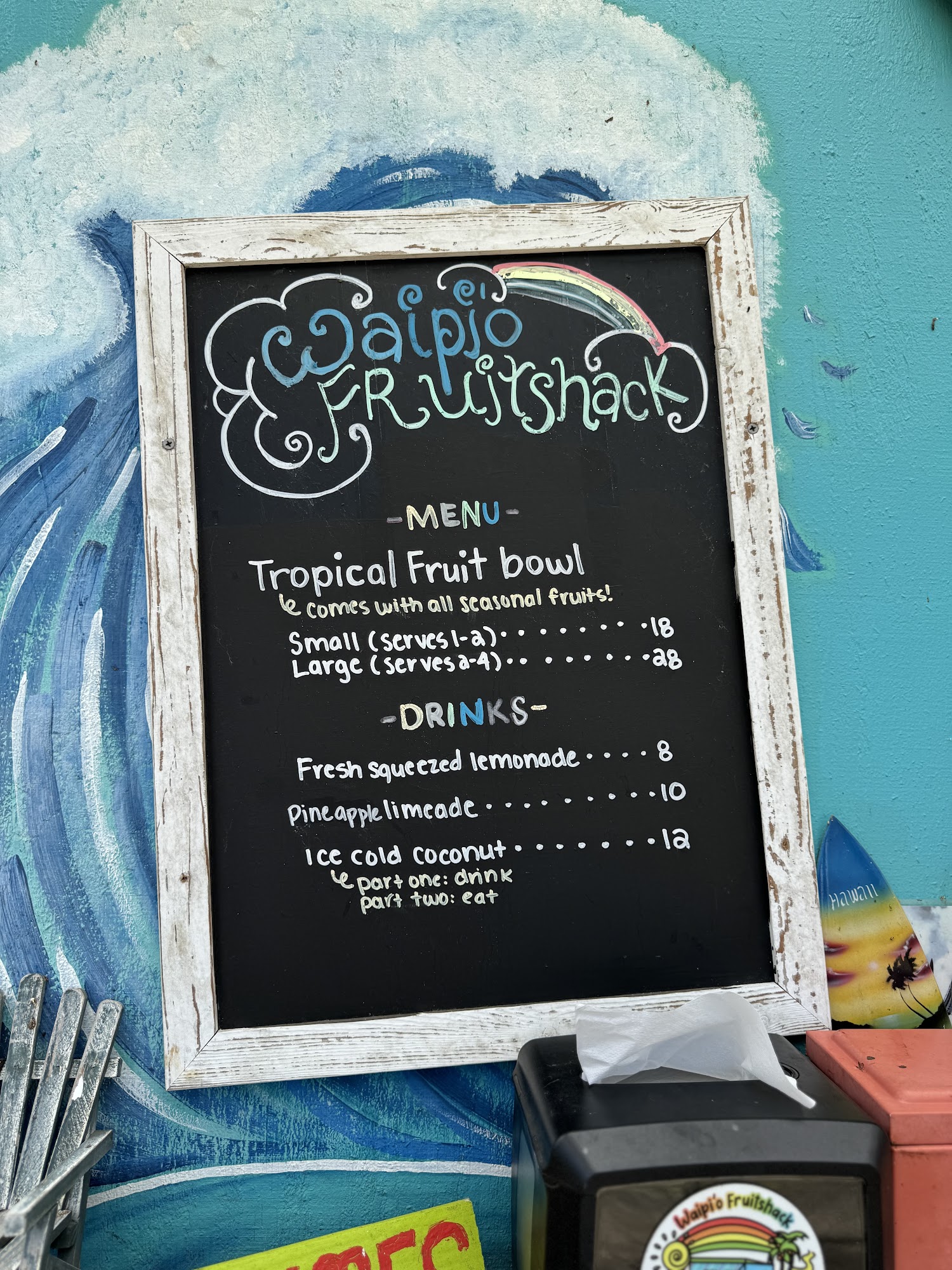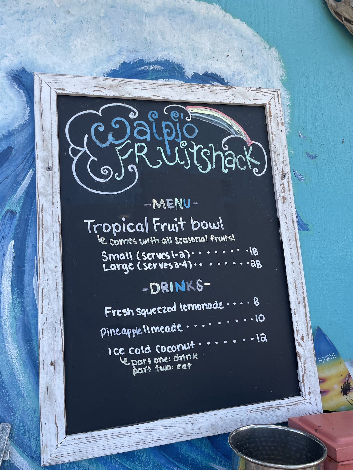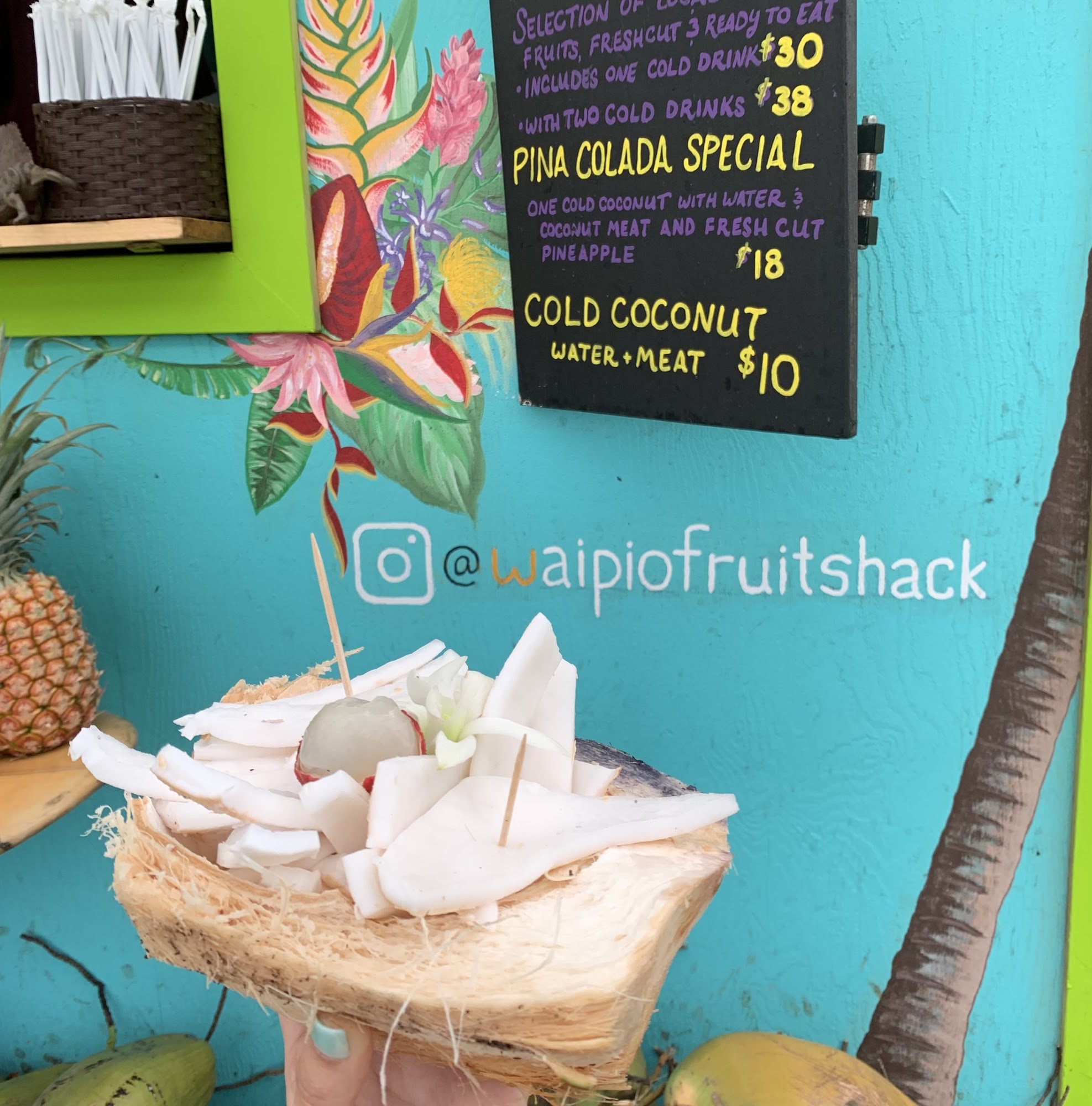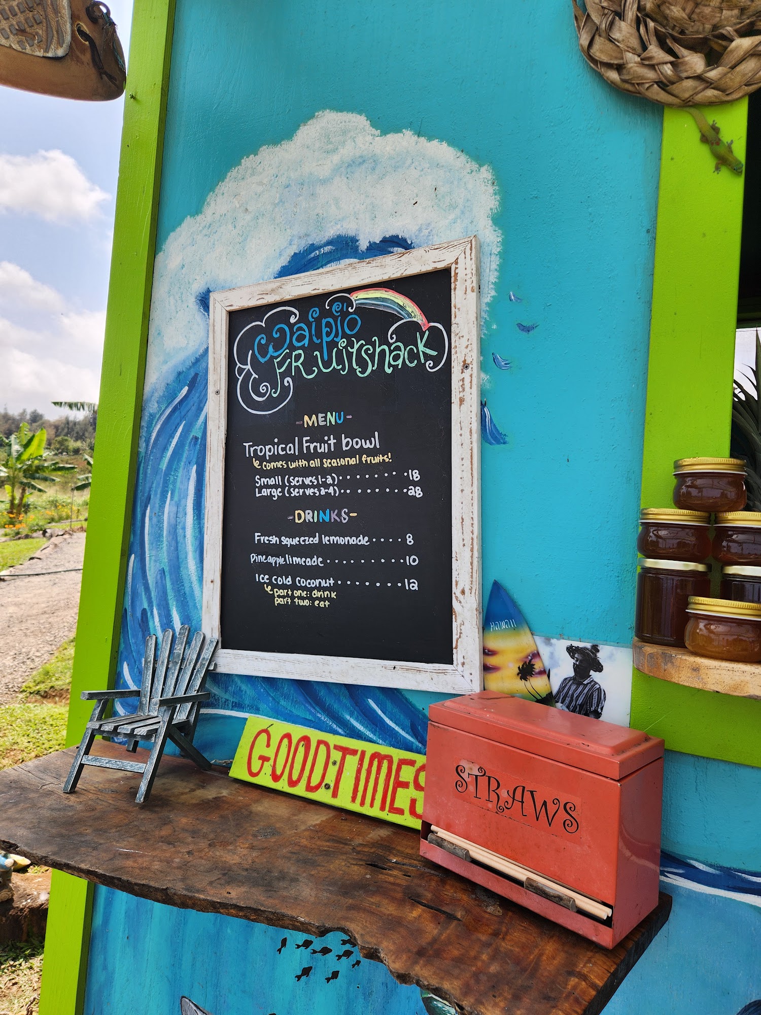 The Waipi'o Fruit Shack is a charming and delightful fruit stand located near the Waipi'o Valley Lookout. This place offers a unique and memorable experience for visitors. The fruits are fresh, delicious, and harvested right on the property, including amazing white pineapples and other tropical varieties that are hard to find elsewhere. The person running the stand is kind and polite, adding to the overall pleasant atmosphere. The Fruit Shack has a great vibe, with soothing music playing and friendly ducks and geckos roaming around. Visitors can enjoy a peaceful stroll around the property, taking in the beautiful scenery and interacting with the local wildlife. The stand also offers a variety of refreshing drinks, such as sugar cane juice with lemon and fresh coconut juice straight from the coconut. At only $18 for a whole fruit bowl, the Waipi'o Fruit Shack provides an incredible value and a truly authentic Hawaiian experience. Whether you're on your way to or from the Waipi'o Valley Lookout, this charming fruit stand is a must-visit destination that will leave you feeling refreshed and connected to the local culture.