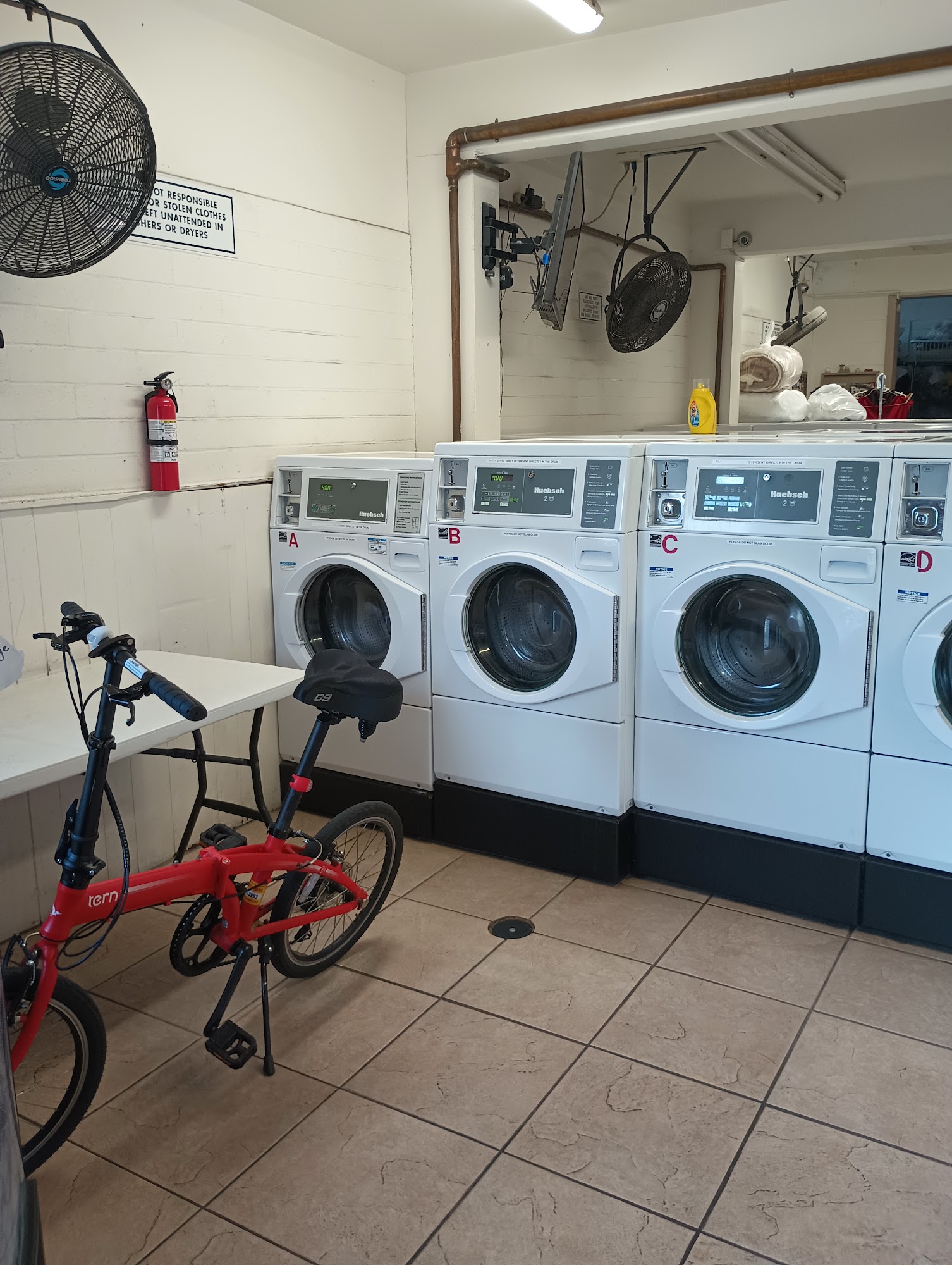 $4 wash(30 mins). $1.50 16 minutes dryer time. No seating or water only a vending machine and change machine to get coins. Good overall to get the job done