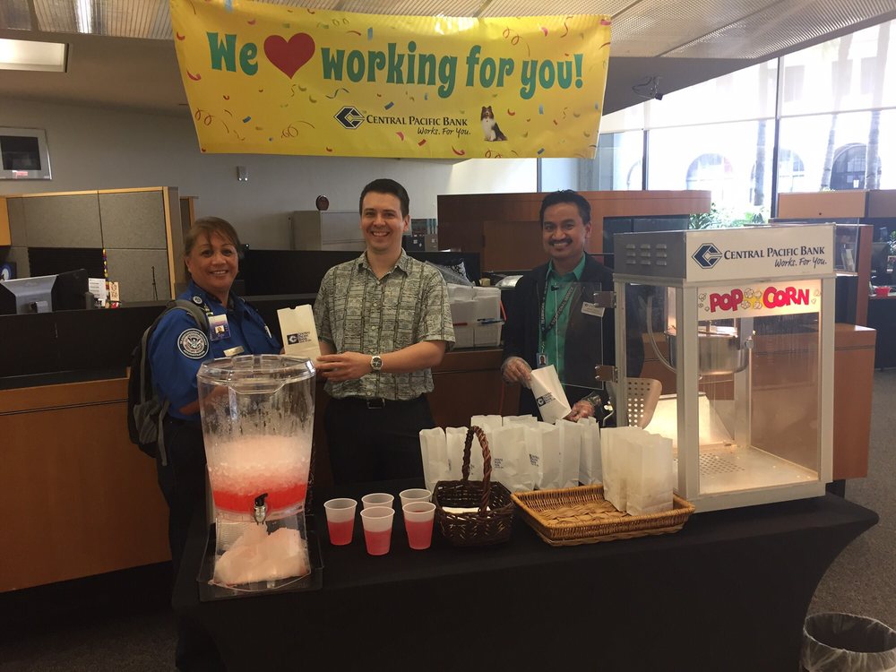 I have a business account with CPB and use this branch almost exclusively. The bank itself is good, but this location has a large lobby with a Starbucks and Aloha Beer Co. There is a workspace with large tables which are great for impromptu meetings or if you just need to get some quick work done.