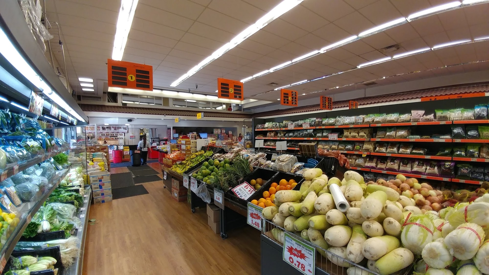 This Korean supermarket offers fresh produce, delicious side dishes, and a great selection of soups at its restaurant. My top pick!