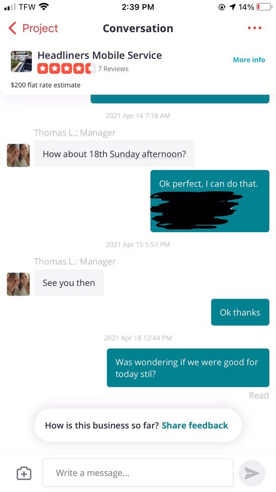 Excellent experience! I called and they were able to come and make the repair the following day. The mobile aspect is great! All I needed to do was provide an electrical outlet and wait comfortably in my house. Definitely recommend!