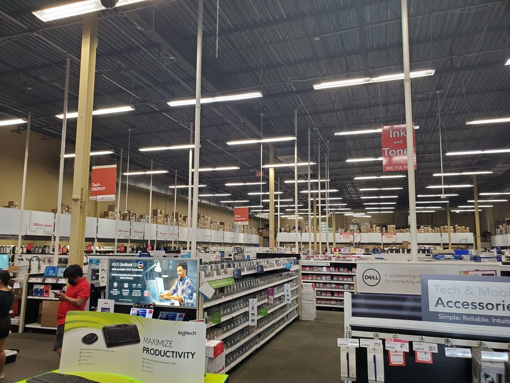 Office Depot is a big, clean store with a good selection for business and home office needs, from paper, ink, and furniture to technology, cleaning supplies, and popcorn. It offers a print and copy center, along with business services like custom printing, shipping with FedEx, and tech support. The store advisors are generally described as very helpful, knowledgeable, and service-oriented, with specific praise for the copy center's excellent customer service. Customers appreciate the rewards program for cash rewards. The store now provides convenient curbside pickup for online orders. While sometimes busy, associates are helpful during checkout, ensuring a positive experience.