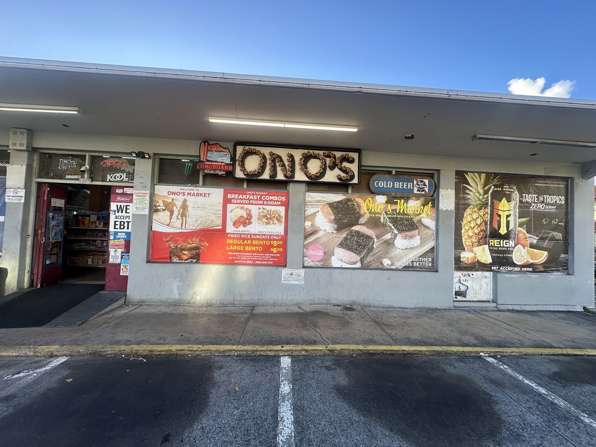 Ono's Market are a well-known breakfast bento place. We serve freshly made breakfast bento box, Vietnamese egg rolls, summer rolls. Fried gyoza. Sweet bread with hot dog, Ham&cheese. Rice cakes. We offer the best price for cigarette,vape and drinks around the area. Always appreciated for supporting us. Mahalo
