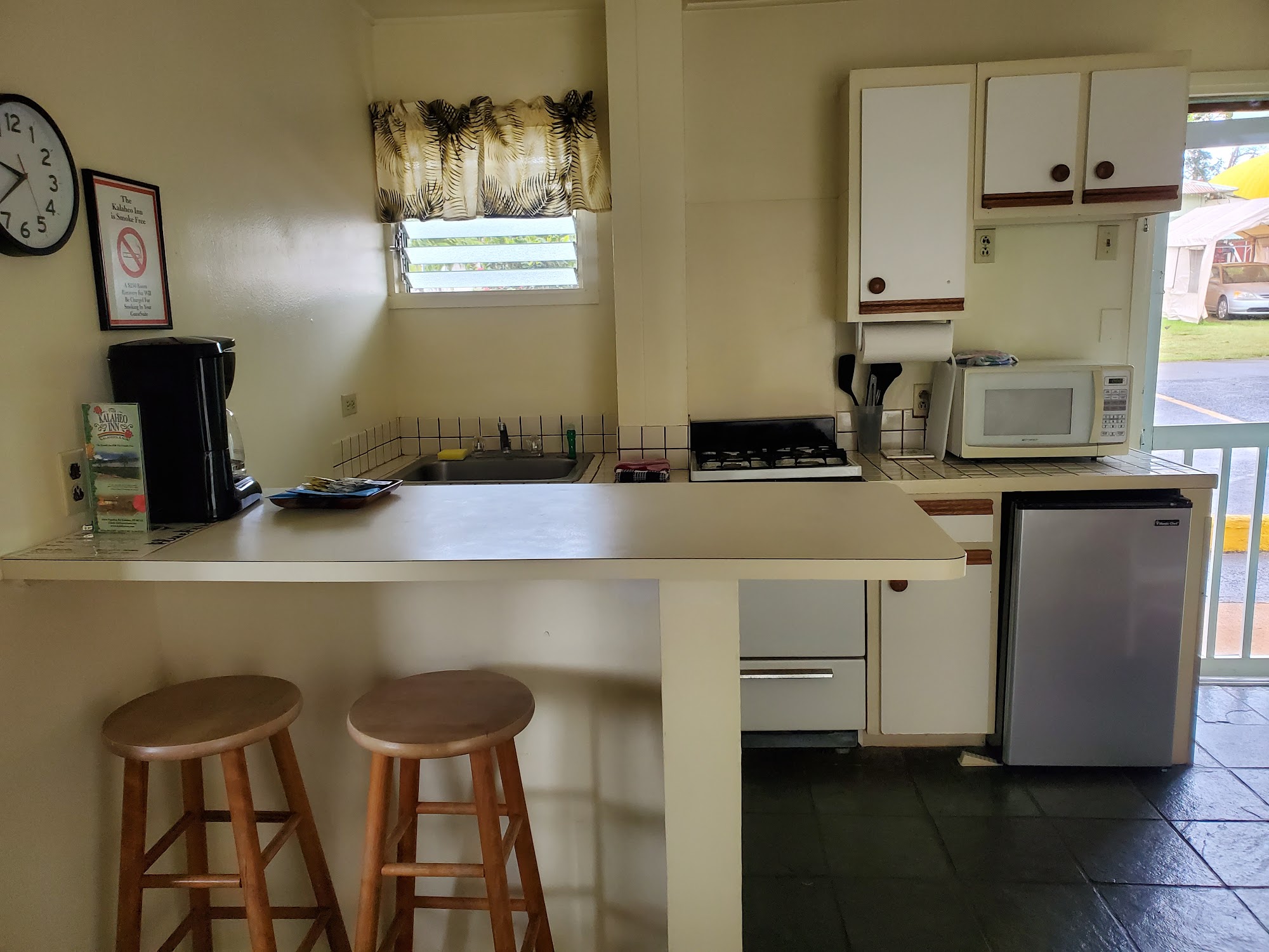 Kalaheo Inn is a wonderful, old school, and quiet inn in a beautiful location. The suites are clean, spacious, and very comfortable, capturing the island tradewinds. Rooms feature ceiling fans and comfortable, cozy queen beds for good sleep. The showers are small but have very good water pressure and volume, complemented by luxury bath towels. Each room includes a kitchen with just about all the utensils you need and a cute outside sitting area to enjoy the sweet-smelling air. The grounds are very well-manicured and naturally beautiful. The location is perfect, with easy walking distance to about five good restaurants, all proximal to the inn. The owners and management are described as some of the nicest people, very kind, dedicated, and friendly, embodying the Aloha Spirit. The price is very reasonable. Guests note they would not hesitate to book another stay and definitely plan on returning soon to this lovely inn.