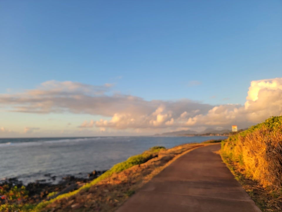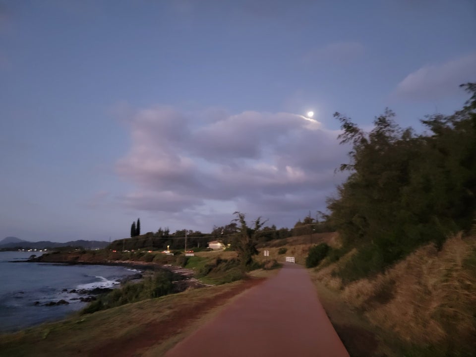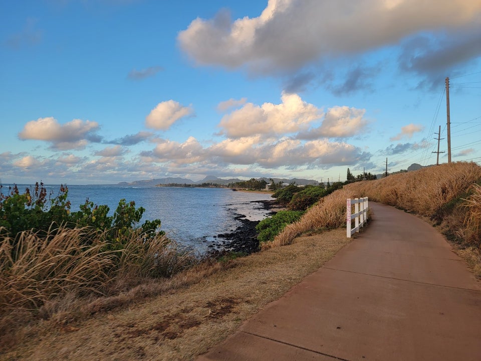 This paved path runs about 8 miles from Kapaa north. There are quite a few people who walk and bike as it runs like along the coast. There's very little shade or cover if it's hot or rains, but we enjoyed a couple of walks and the views are beautiful.