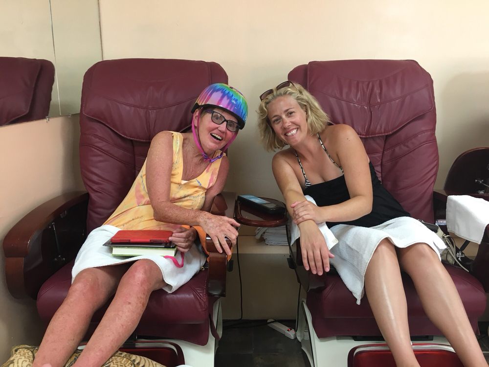 My husband I always go here for a pedicure because they give great foot massages and they have the massage chairs. Great value!