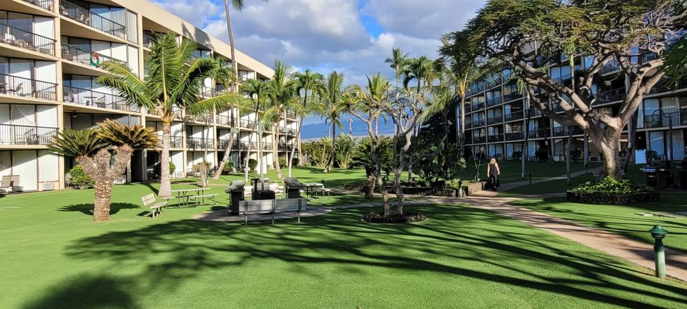 Not gonna lie, doesn't look like much from the parking lot side, but the actual condos are great, the outdoor area in the middle is fantastic (GREAT pool, 6 BBQ grills), the view is AMAZING, and the small beach is superb.