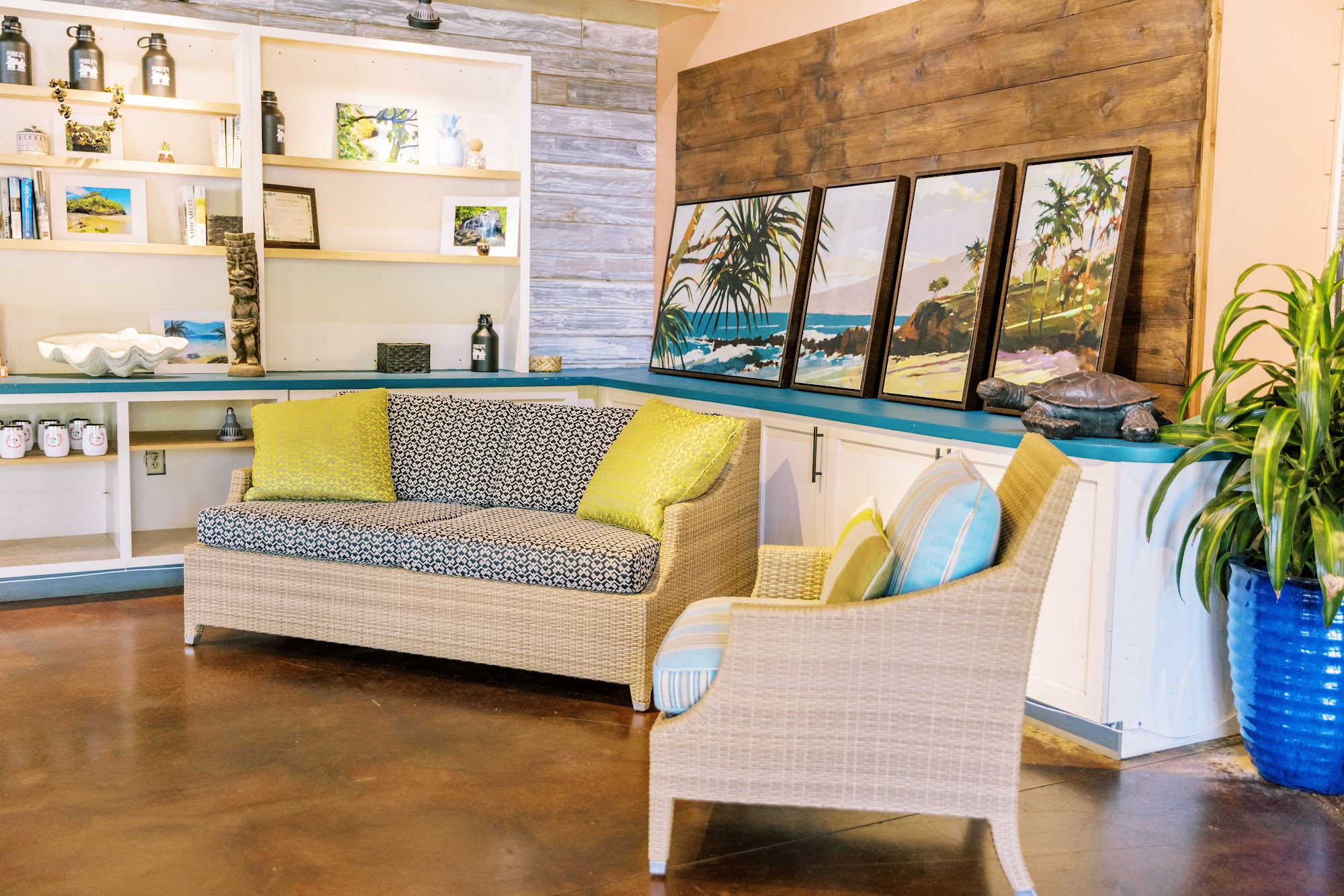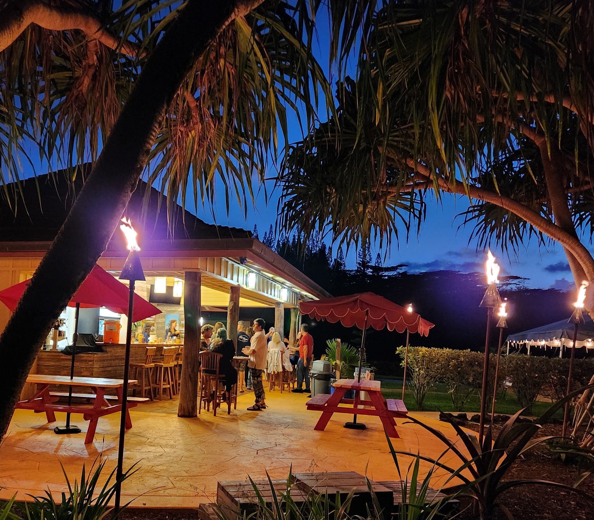 Sunset Lanai at Anaina Hou offers a lively and welcoming atmosphere with a focus on community and entertainment. Visitors can enjoy wonderful drinks, including strong cocktails and $5 draft beers, as well as a solid food menu, though they may need to arrive early to avoid long waits. The staff, particularly bartenders Noel and Haley, are described as attentive, kind, and providing great energy. The venue hosts live music and community events, making it a popular spot for locals and tourists alike to spend an evening. While parking can be a challenge, the overall experience at Sunset Lanai is praised for its chill vibes, beautiful views, and sense of community.