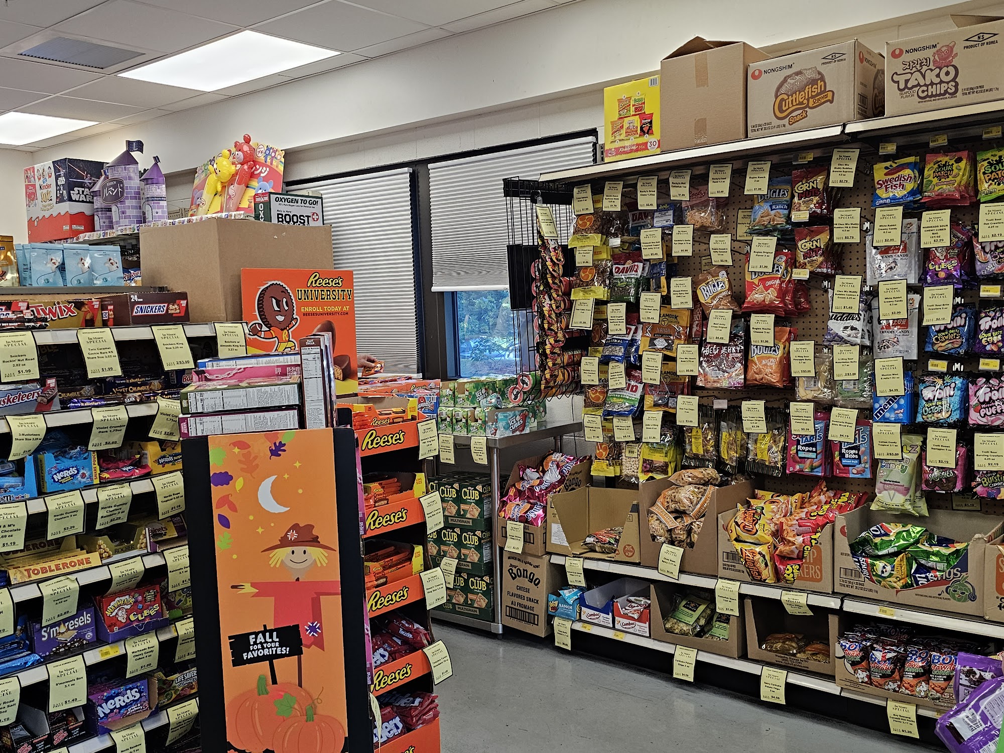 Kokua Korner Mart is a small, clean, and friendly snack shop gem. It offers great deals and exclusive snacks, including Japanese snack imports and protein snacks. The selection is very big with a large variety of unique candies, chocolates, gummies, and snacks, featuring many items not found elsewhere. Bargains are a major highlight, with discounts like candies for .10 cents or 5 for a $1, and deeply discounted items close to their expiration date. The space is quite small but packed, making it a go-to place for finding unexpected treats at good deals. While the drink selection could be better priced or more unique, the focus is on the wide array of affordable snacks. The staff is always friendly, helpful, and pleasant.