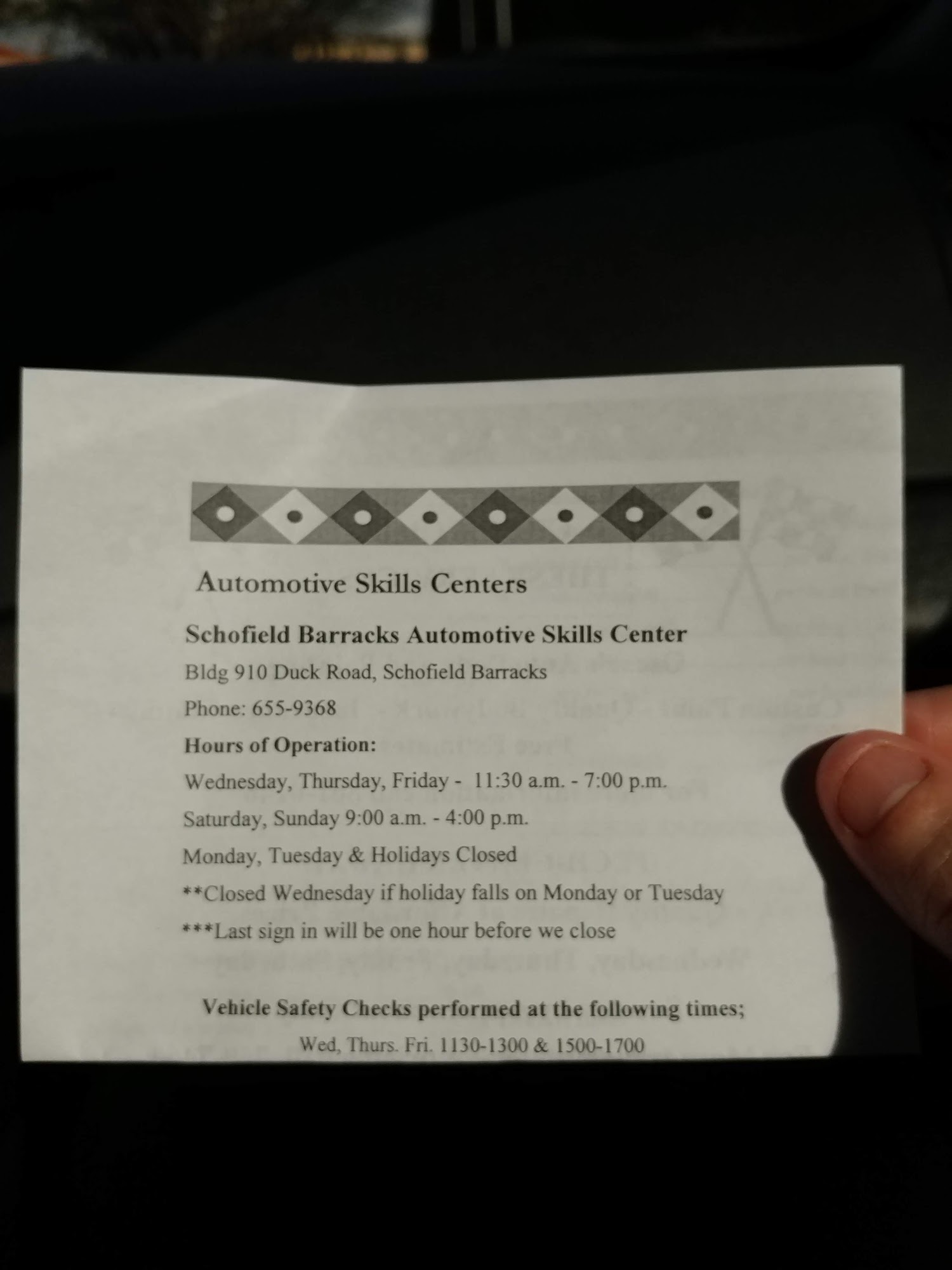 Go during non lunch hours and you’ll speed through your safety check. The only catch is it requires base access to visit.