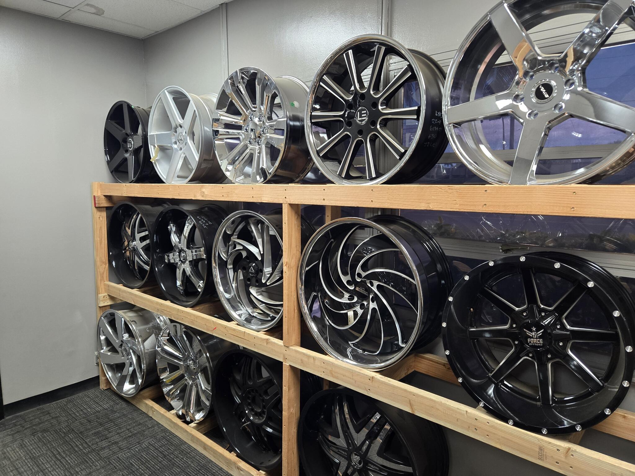 We offer a large selection of new tires and wheels. We also offer the following services,brakes ,oil changes,tune-ups,a/c service,fleet preventive maintenance programs,engine repair,exhaust,suspension work,lift kits and drop kits,radiator replacement,tire rotations and flat repairs