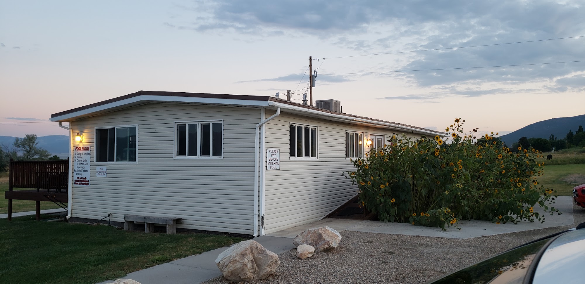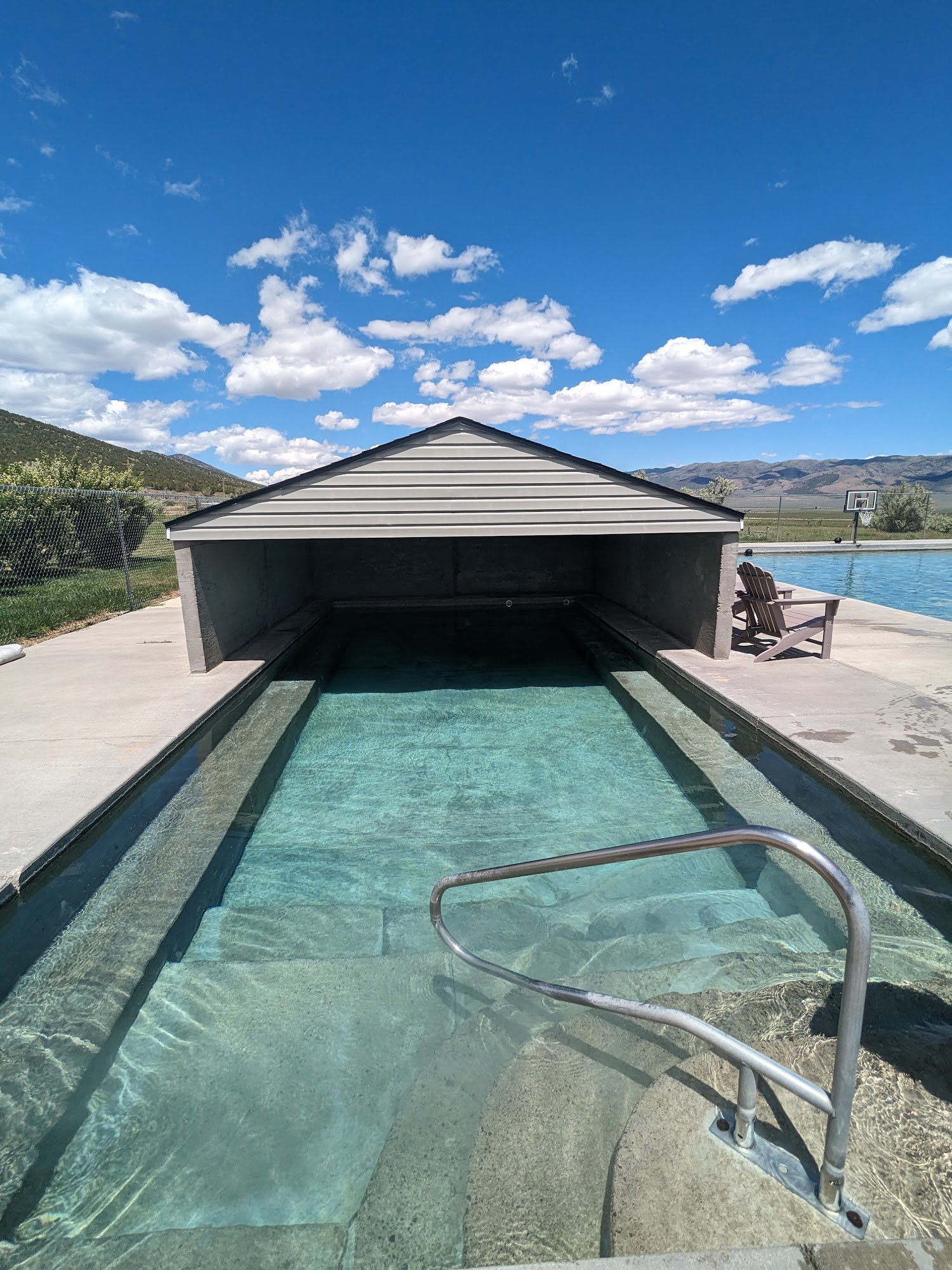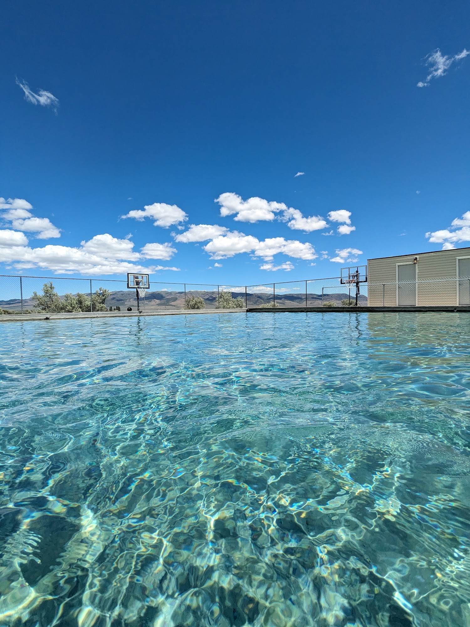 After a long haul on the California trail, there isn't much better feeling than a relaxing dip in a hot tub. With at least three different temperature pools for casual relaxation, basketball hoops for the children also.