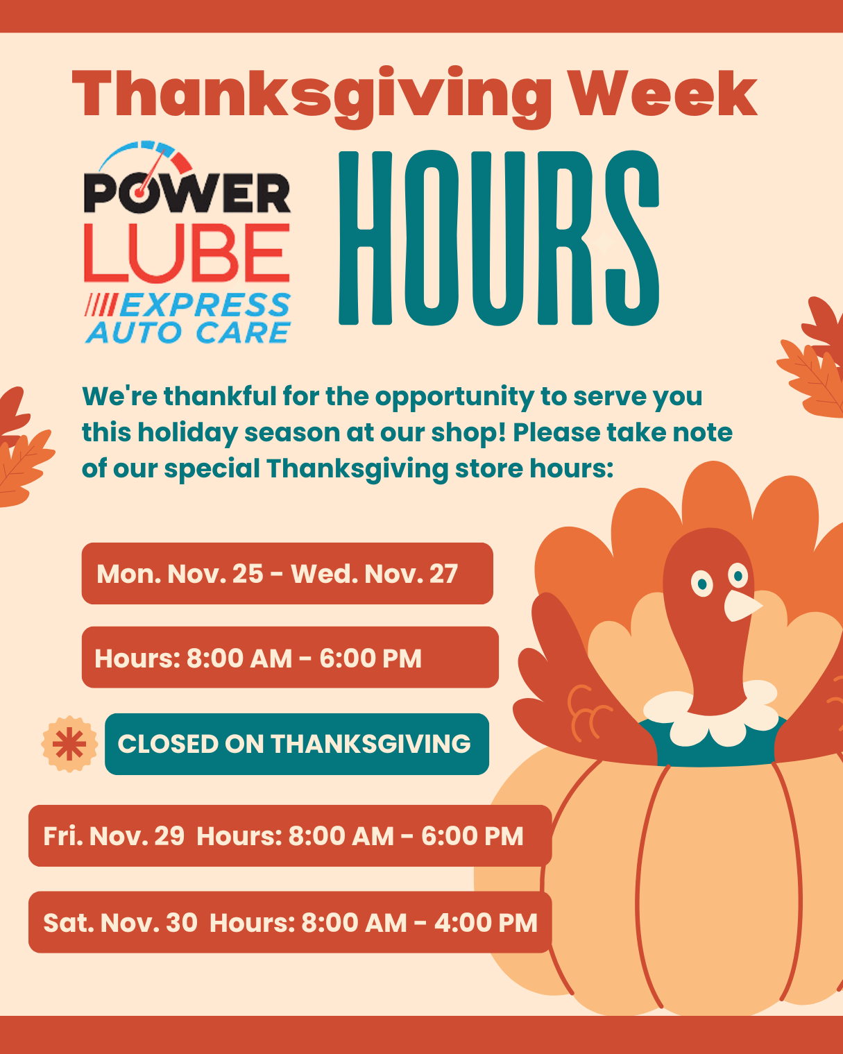 Oil ChangeHours: