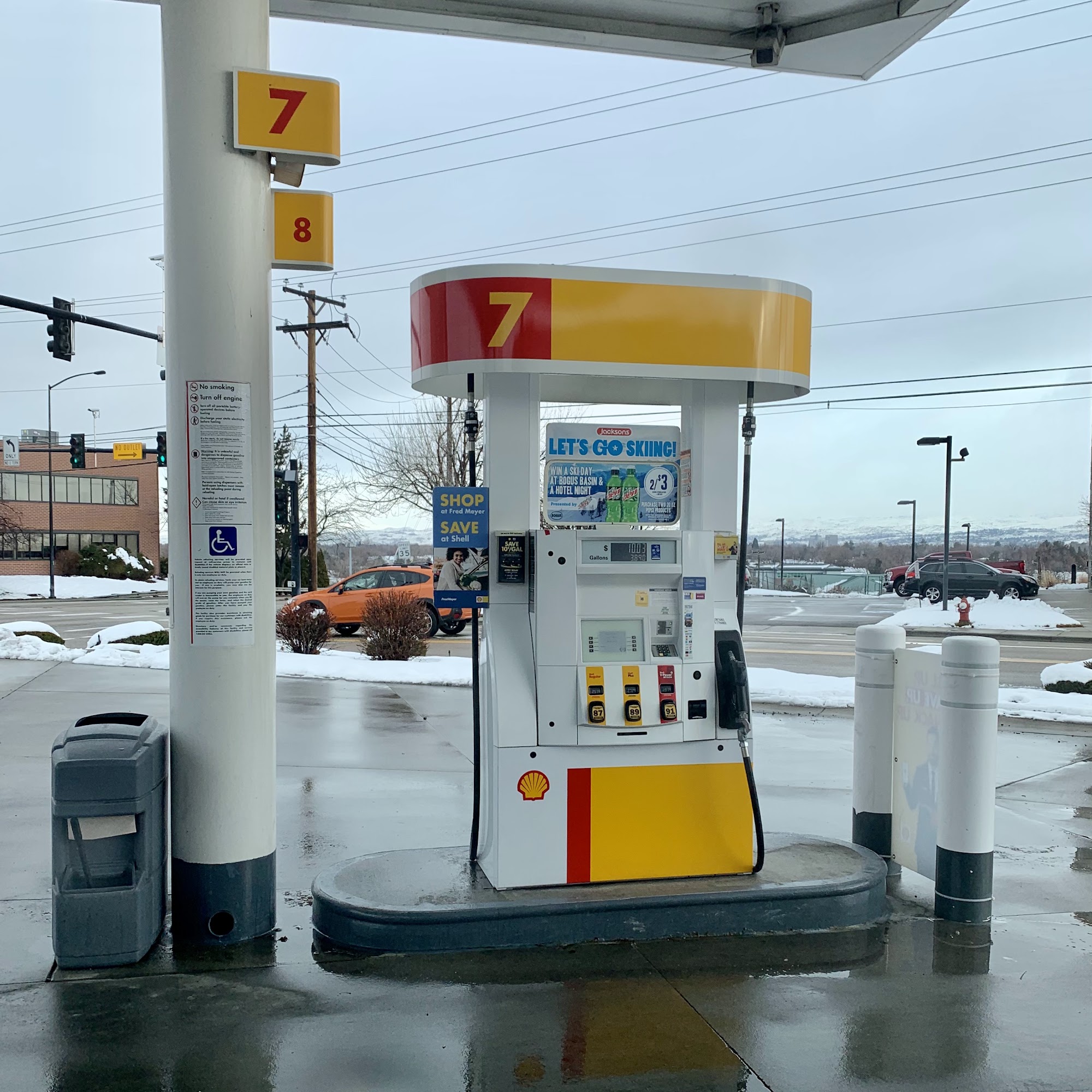 The gas island was clean. The gas station store looked new and was well-maintained.