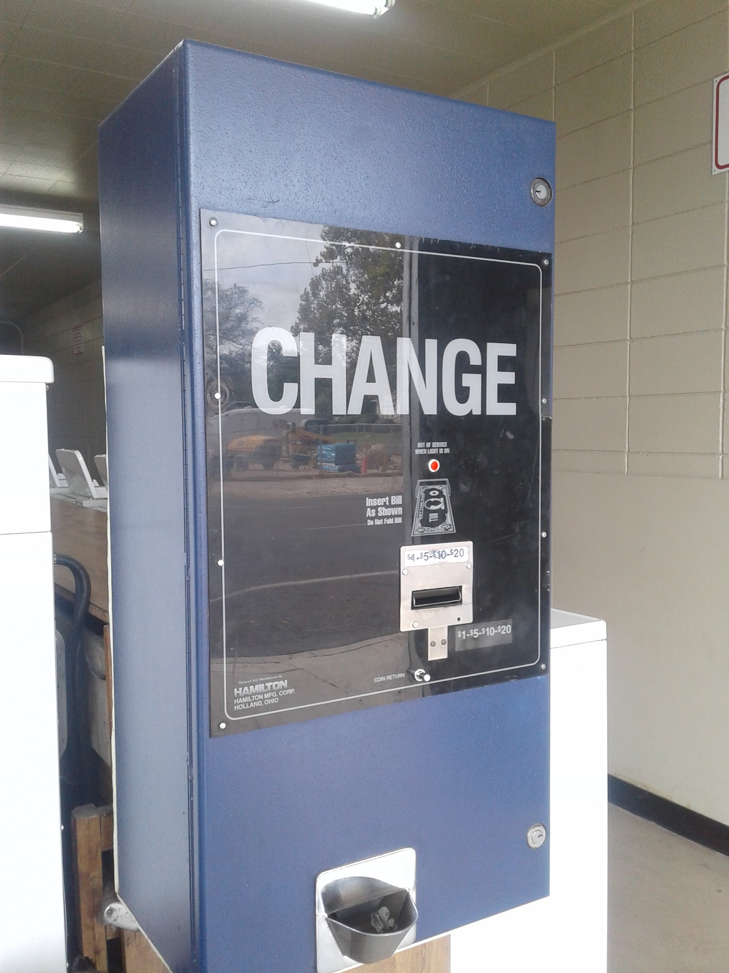The change machine was out of service, not to mention the sketchy group of people hanging out in the back yelling and talking gibberish. The dryers weren’t hot and took a long time to dry and the broken machines aren’t labeled.