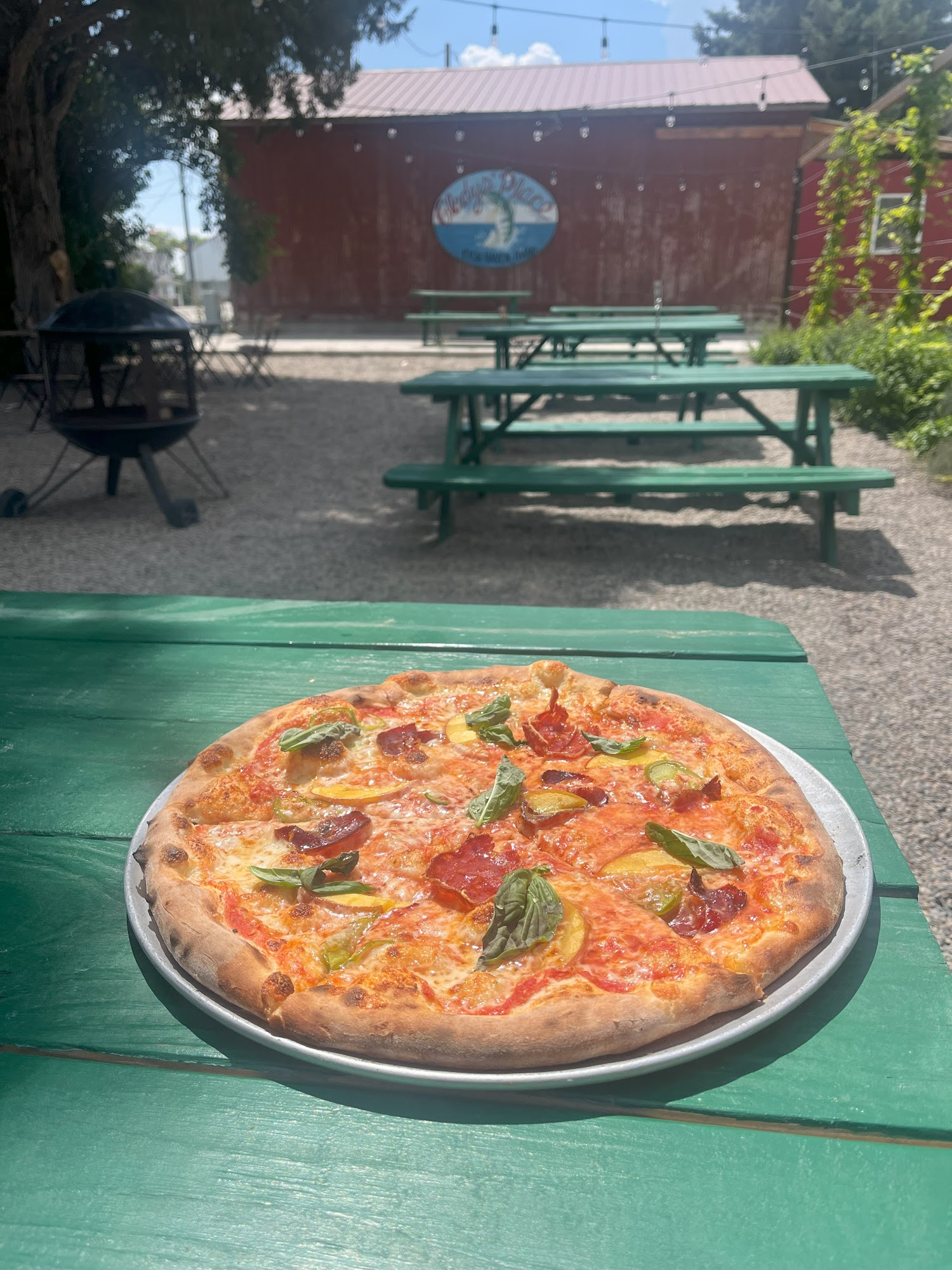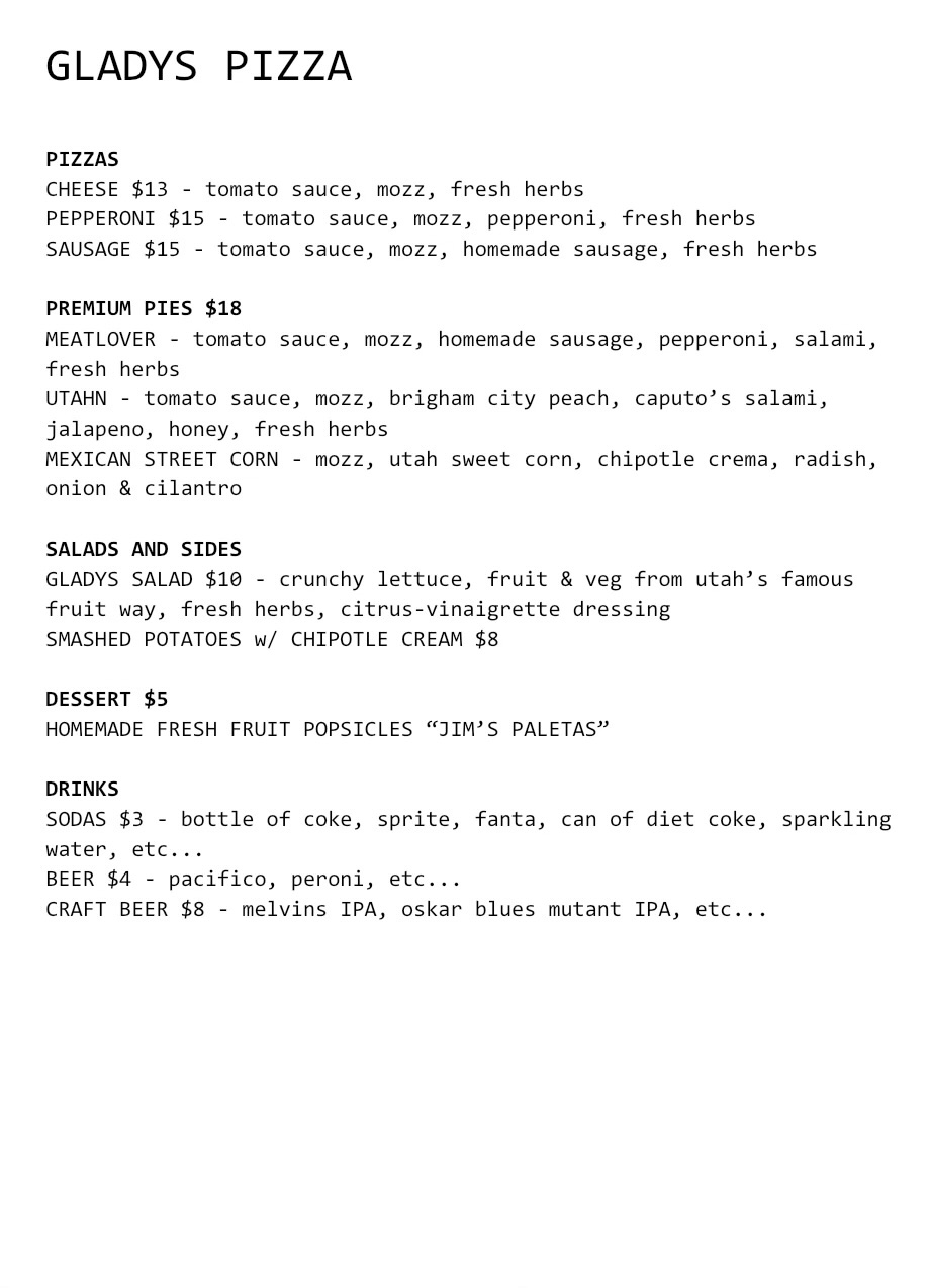 Gladys Pizza serves fantastic and delicious wood fired pizza, considered by some to be among the best they have ever had. The pizzas feature wonderful flavor combinations and very fresh, tasty toppings. The dough is locally sourced, homemade, and exactly like Neapolitan, resulting in a thin crust that is crispy, chewy, and cooked to perfection without feeling greasy or heavy. Popular choices include the Meat Lovers, Idahoan, pepperoni with basil, and Mexican Street Corn. The Caprese salad is also delicious. The business is noted for being very nice, and the outdoor picnic tables are perfect for groups. Customers highly recommend it and state they will definitely come back.