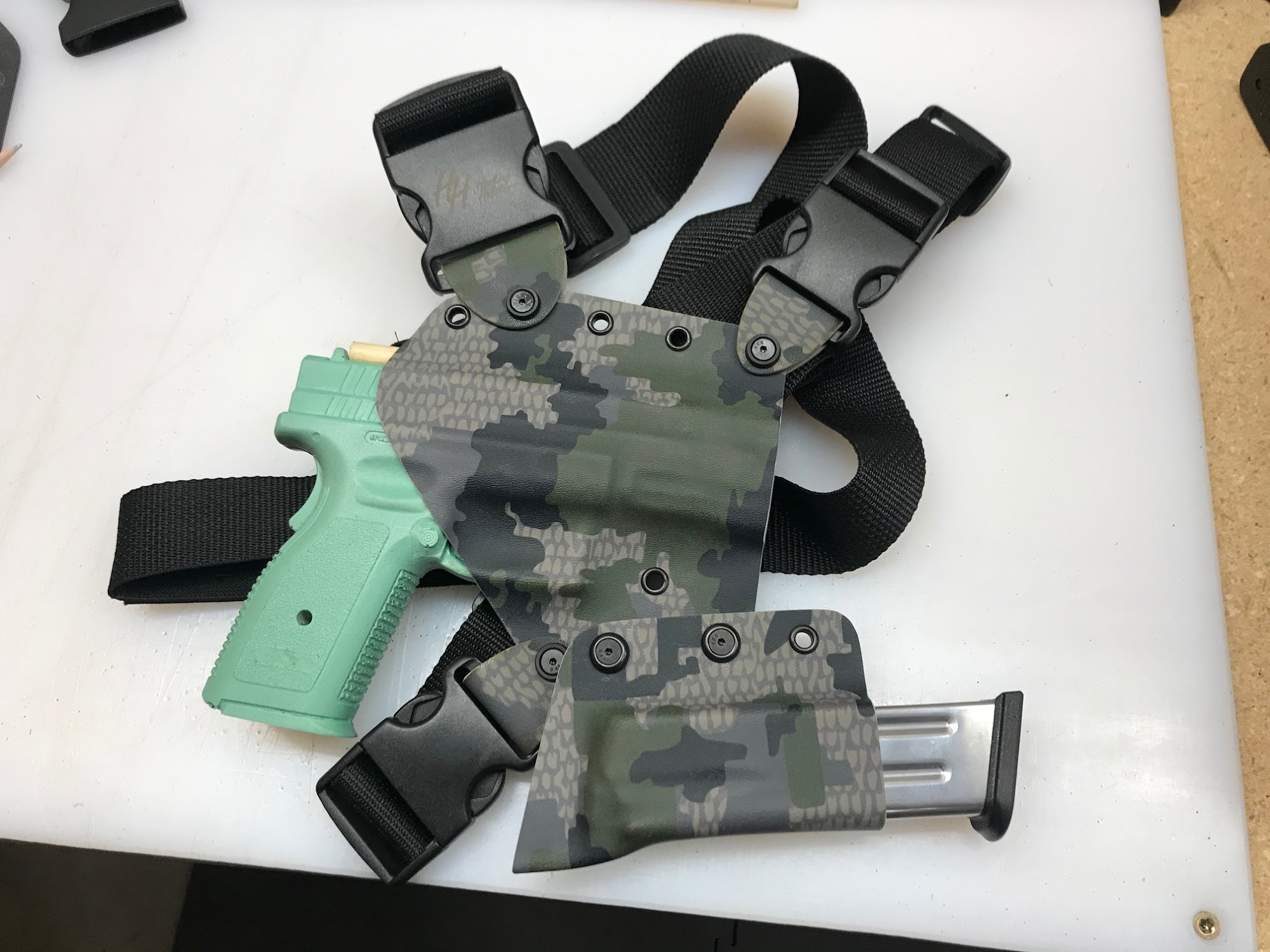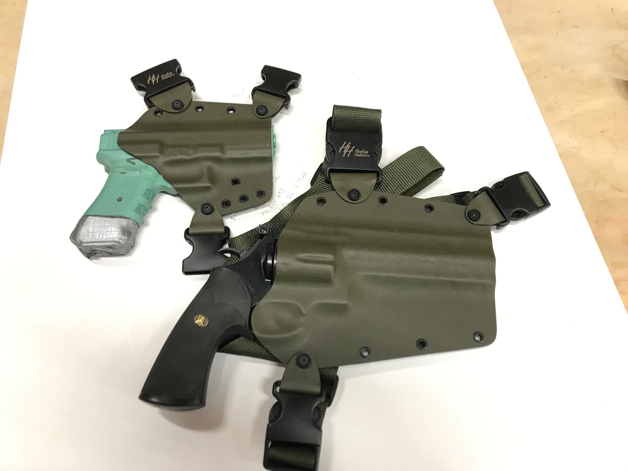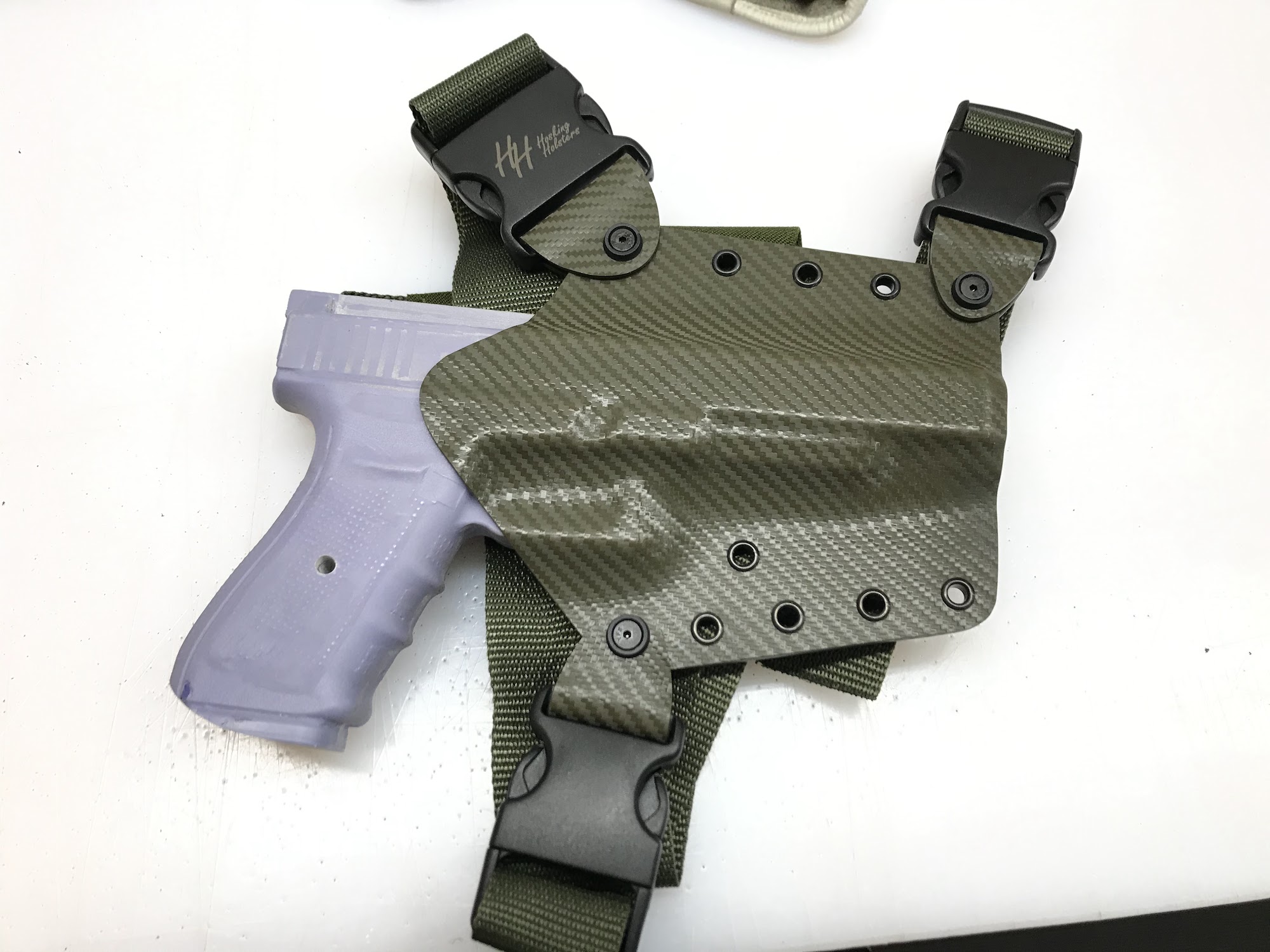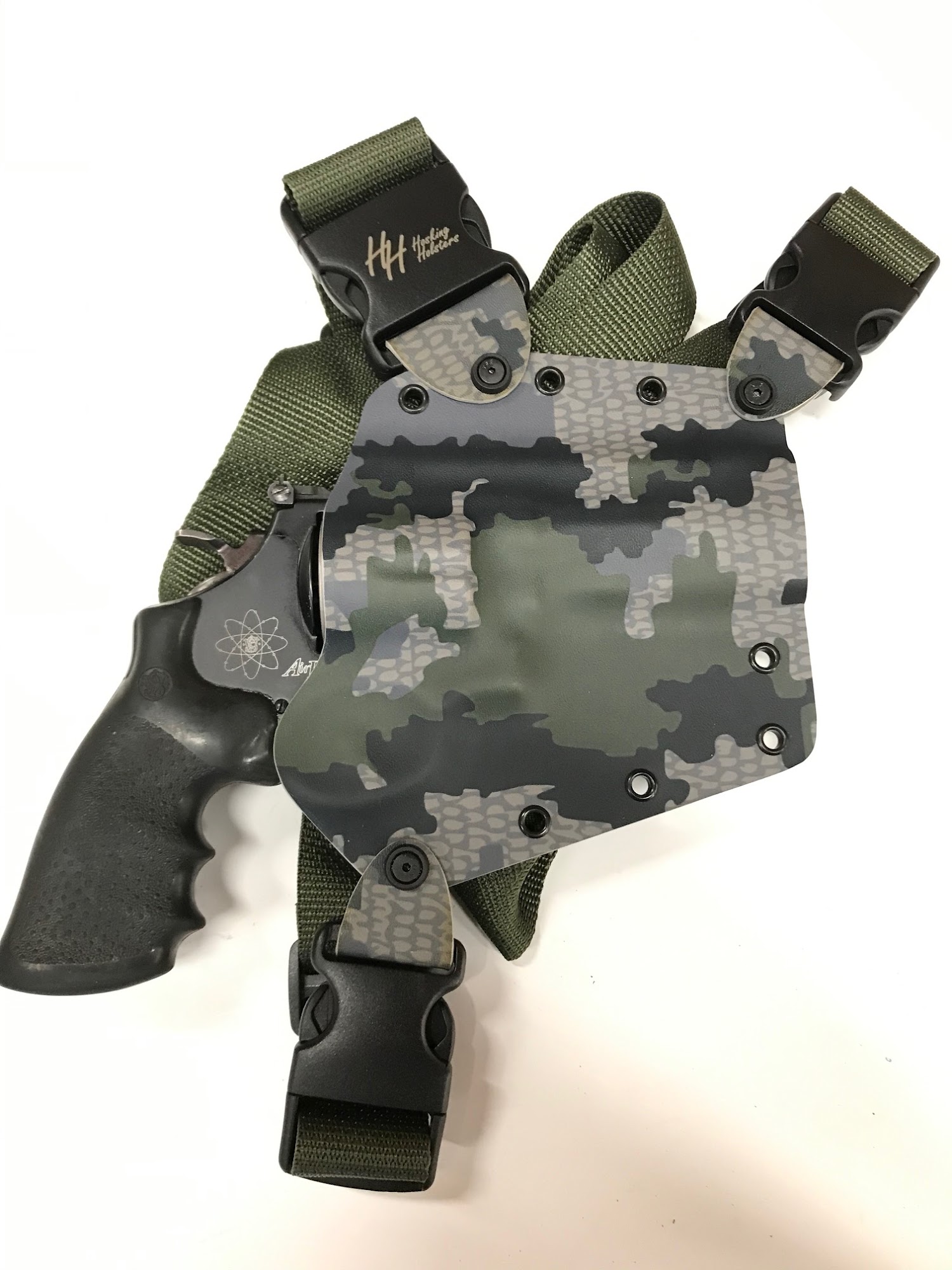 We specialize in custom kydex holsters, for any of your pistol needs. We are most popular for our chest holsters, but also do any other style holster you prefer. Walk-ins are always welcome, and we strive for the best turn around time possible. Please check out our product on our website. Mondays are the busiest for us, so walk-in orders will not be done this day.