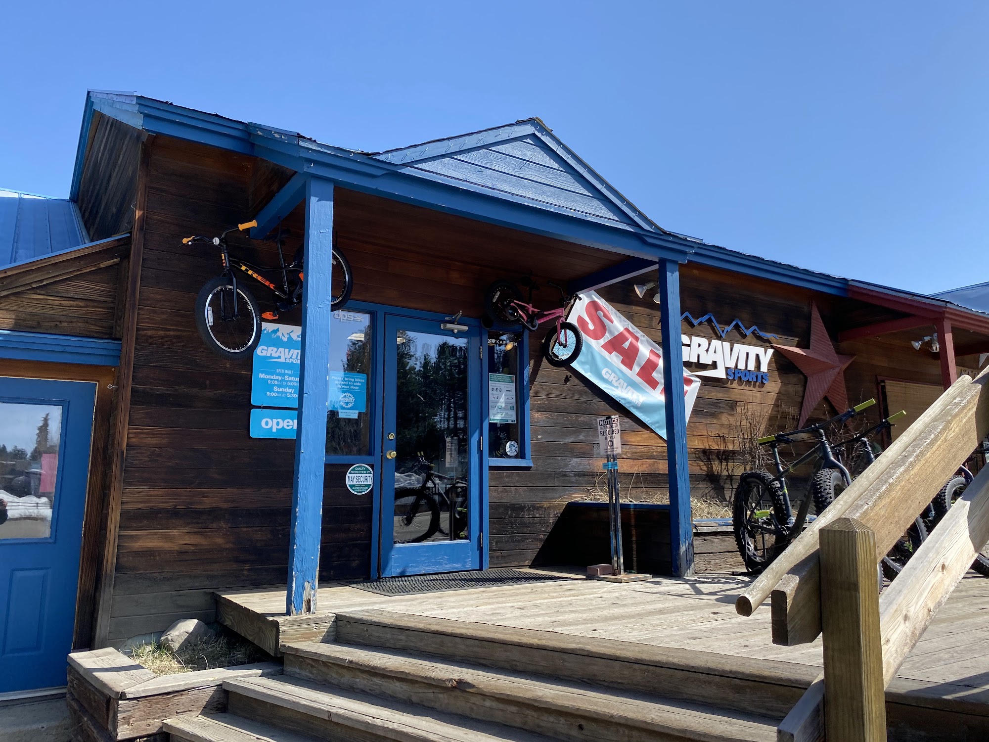 Gravity Sports is a friendly sporting goods store offering an excellent selection of gear for mountain, trail, and river adventures like skiing, biking, and kayaking. The staff is super friendly, kind, helpful, and knowledgeable, providing great info and quick service. Skilled bike mechanics and ski tuning techs are available daily for complete repairs and routine tune-ups at very reasonable prices. The shop offers high-end, clean rentals, with particularly great prices for water rentals like kayaks and paddle boards. It is a fun vibe with cute shop dogs, often described as the absolute best in the area.