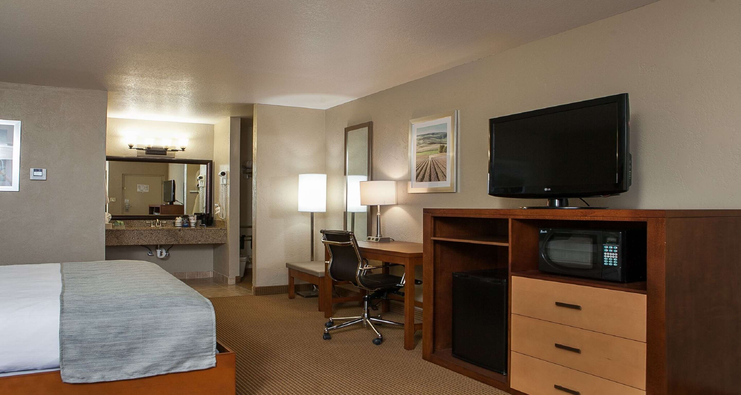 Got there at 2 AM lots of room to park clean parking lot great location, staff was amazing and friendly, very helpful, the room was big and very clean and organized, home away from home, would definitely stay again ⭐️⭐️⭐️⭐️⭐️