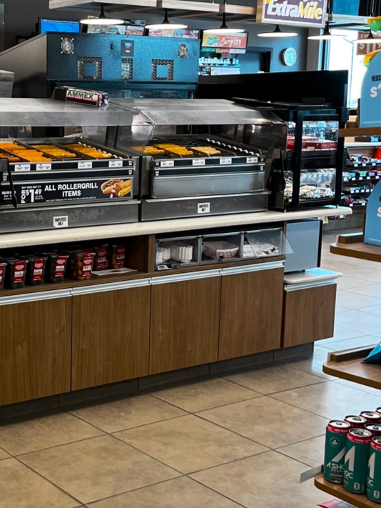 It's a gas station. Bad selection of to-go food, unless you like 5$ dried out sadwiches or overpriced hotdogs.