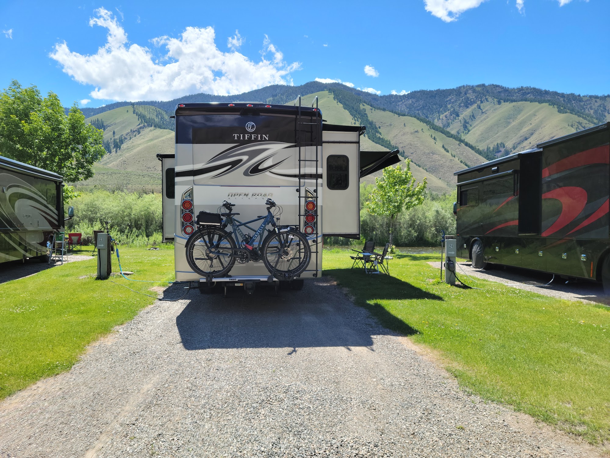Wagonhammer RV Park is a wonderful and excellent RV park, described as a beautiful and special place with breathtaking and fantastic scenery. The park is pristine and well-groomed, with perfectly maintained grounds. RV sites are right next to the beautiful Salmon River and a stream, with some primo sites just feet from the water, offering beautiful views no matter the spot. The owners and management are so nice, accommodating, and welcoming, treating guests like family. The staff are very friendly, courteous, and always quick to greet with a smile. The amenities are clean, including very clean bathrooms and showers that are new appearing. The park has a great little gift shop. There are endless activities to enjoy, including fishing, paddle boarding, hiking, rafting, and horseback riding. The location offers beautiful trails around the campground and lots of nearby activities like 4-wheeler mountain trails within a short radius. Each site has a firepit. Guests report feeling spoiled and look forward to their stay, with many returning year after year, noting there is no place like Wagonhammer.