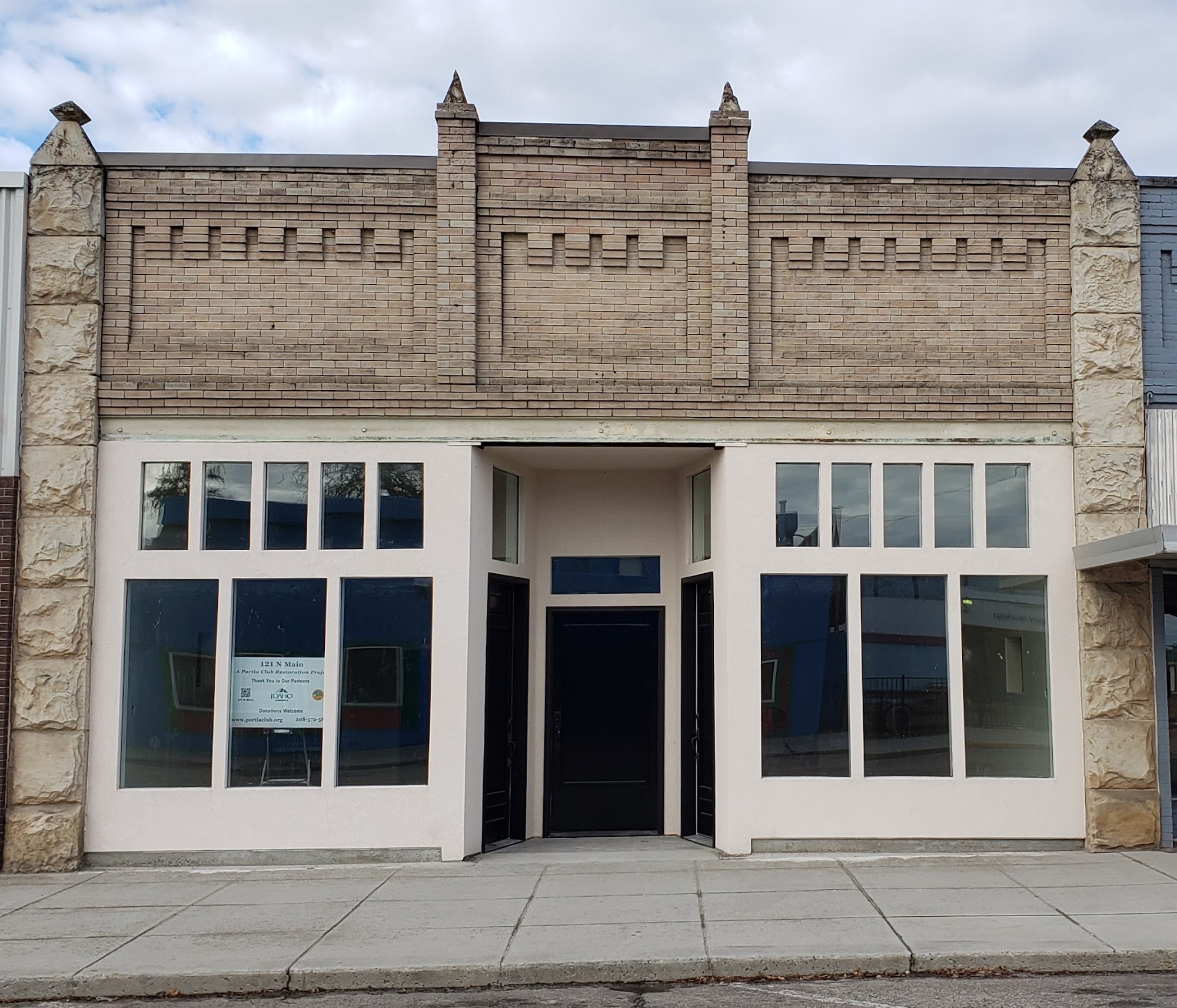 Non-Profit Start-Up Space. Built in 1910, 121 N Main is a beautiful, unique architectural structure that looks like a castle framed with Idaho Sandstone. Until the 1980s, it served as part of a thriving business center, housing two separate businesses under the same roof. It then fell into disrepair and sat empty for 30 years. In 2018, the Portia Club, 501(c)3 Non-Profit, started to restore the building. In 2021, they turned it into a Start-Up Space for aspiring entrepreneurs.