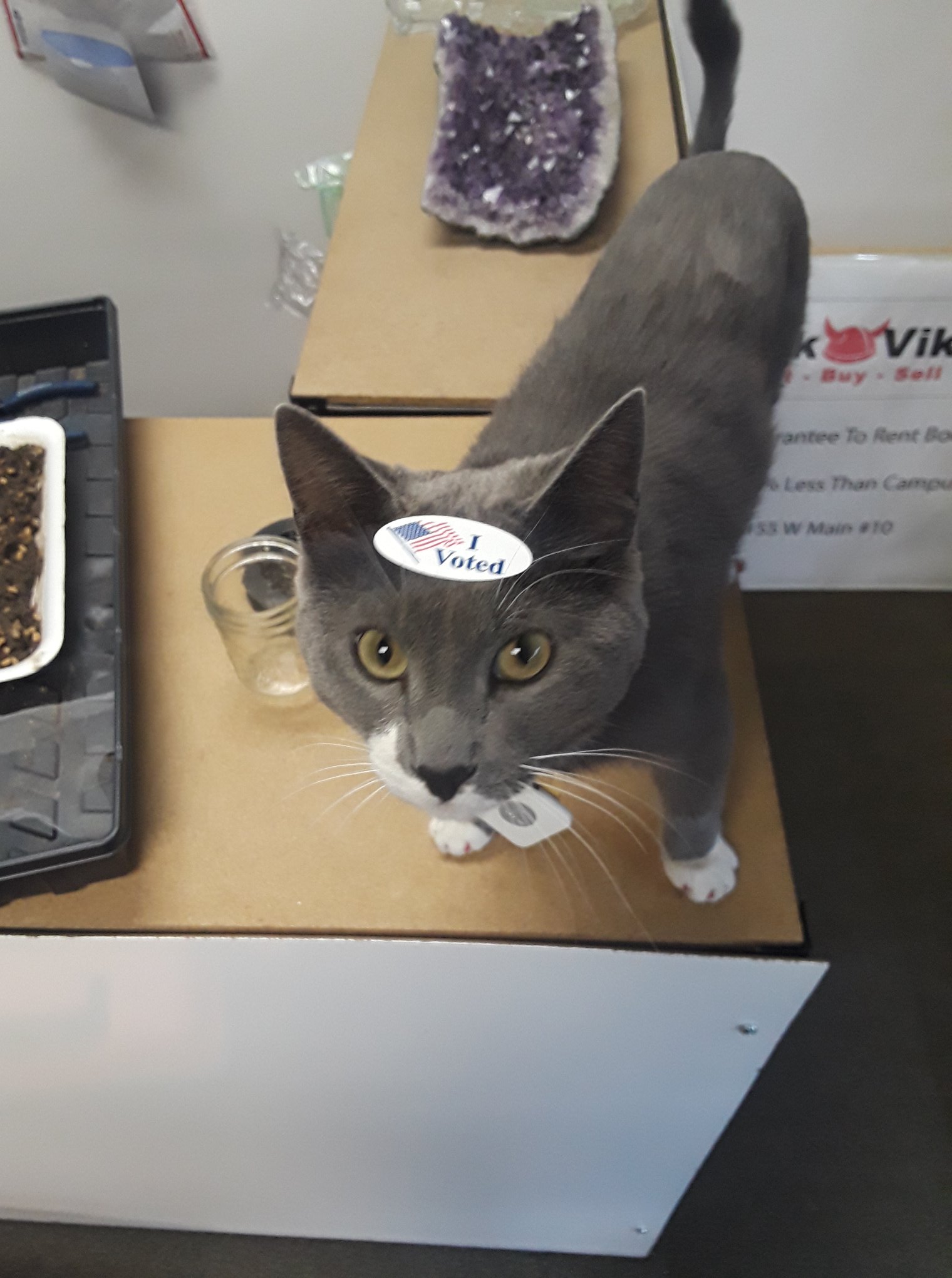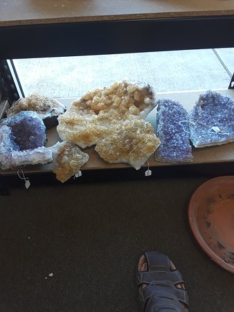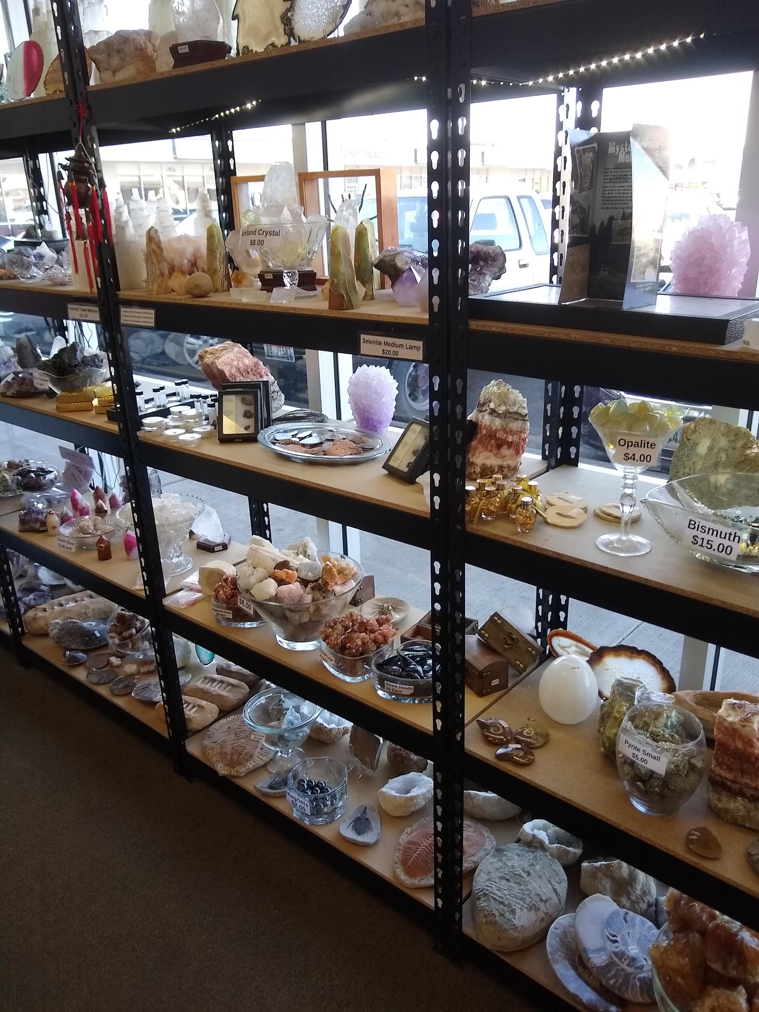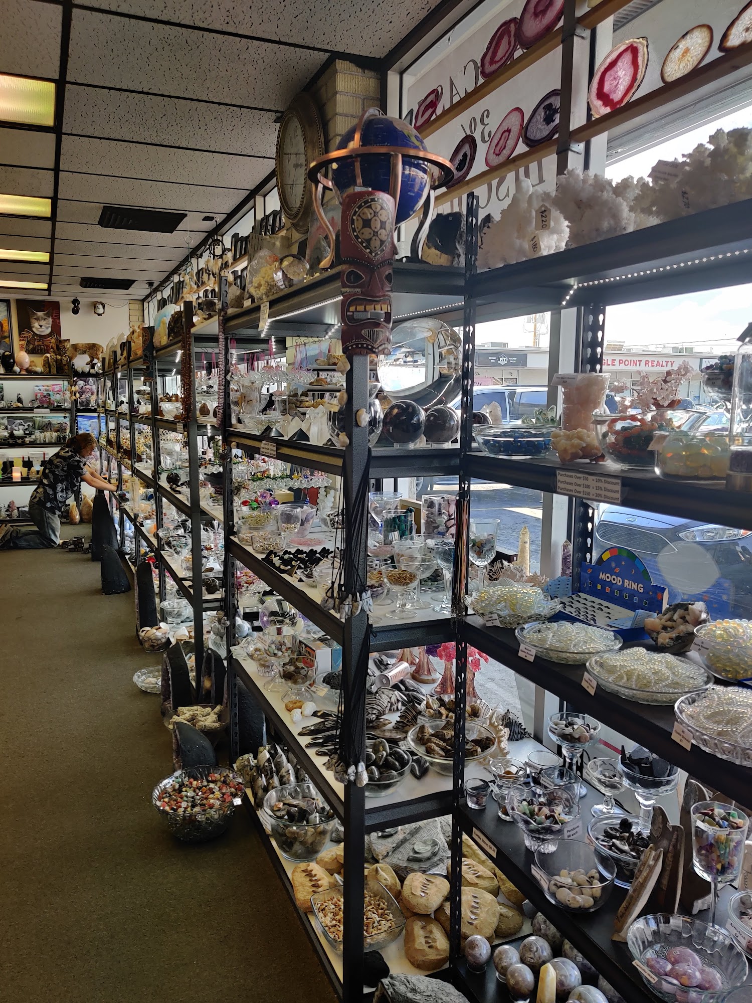 BookViking is a unique shop offering an interesting mix of textbooks and a rock shop. It features a great selection of crystals, stones, jewelry, crowns, trinkets, and music boxes. The environment is very cool and neat, with relaxing music. The staff and owners are amazing, very nice, friendly, helpful, community-focused, and know their books and their gems and minerals. A cat is sometimes present and is noted as very kind and the cutest. Some reviewers mention that certain rings are made of something odd, which can turn a finger a dark color or cause a skin reaction, advising customers to keep this in mind. Overall, people have had good experiences and recommend checking out the gem stock.