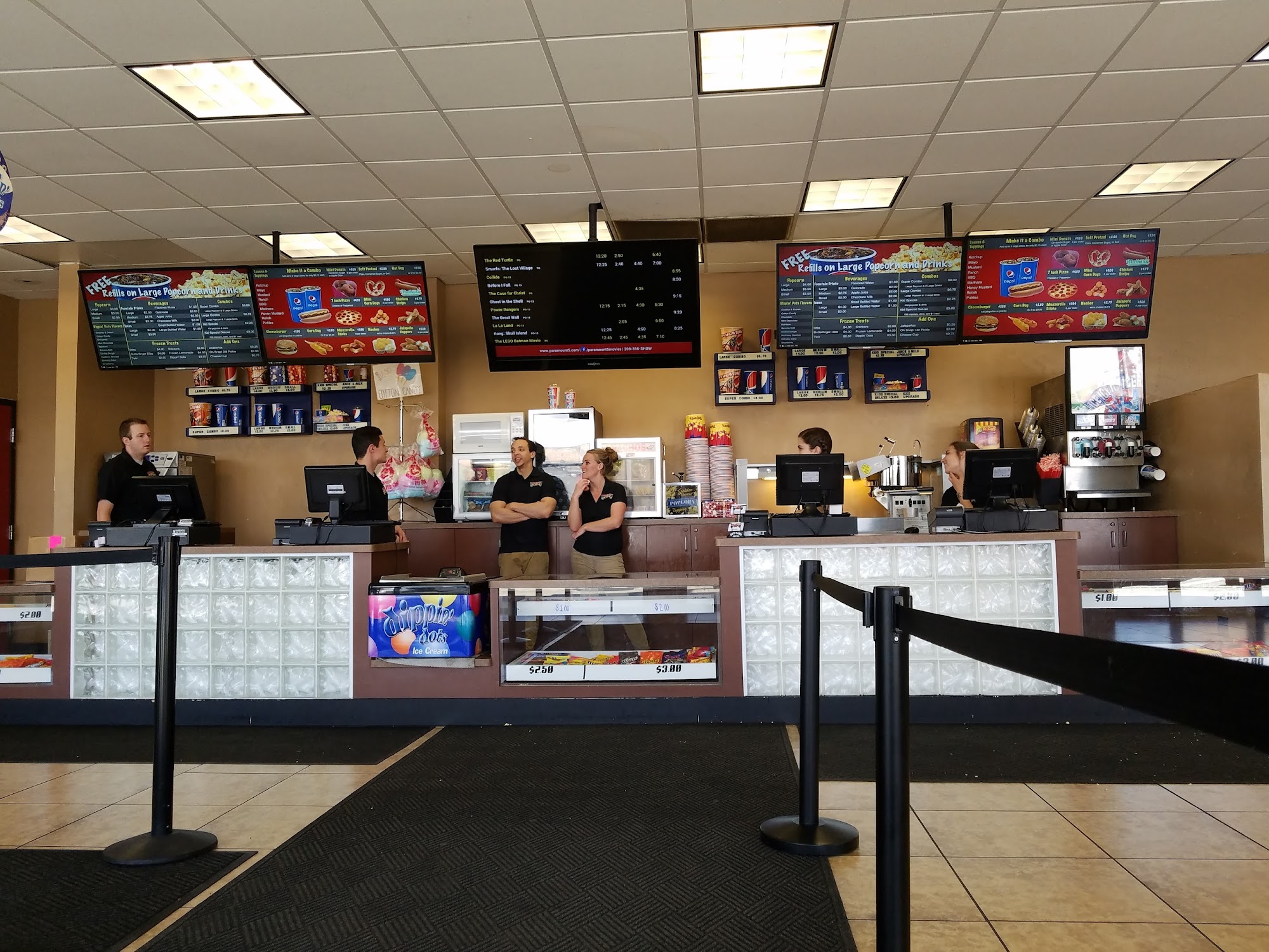 Paramount 5 is a budget-friendly theater located near student housing in Rexburg. The theater offers affordable ticket prices, especially during matinees and special deals, making it a popular choice for families and students. The staff is consistently described as friendly and welcoming. Visuals and audio quality are generally good, providing a decent movie experience overall. However, the theater is older and has some issues, such as sticky floors and seats that are uncomfortable—some recline too far back or feel like slipping off. Seating arrangements require reservations, which some find inconvenient, and parking can be limited. Concessions like popcorn are available, but some customers warn against eating it due to digestive issues, possibly caused by the extra butter. Despite these drawbacks, many appreciate the theater’s low prices and overall cleanliness, making it a decent option for a casual movie night.