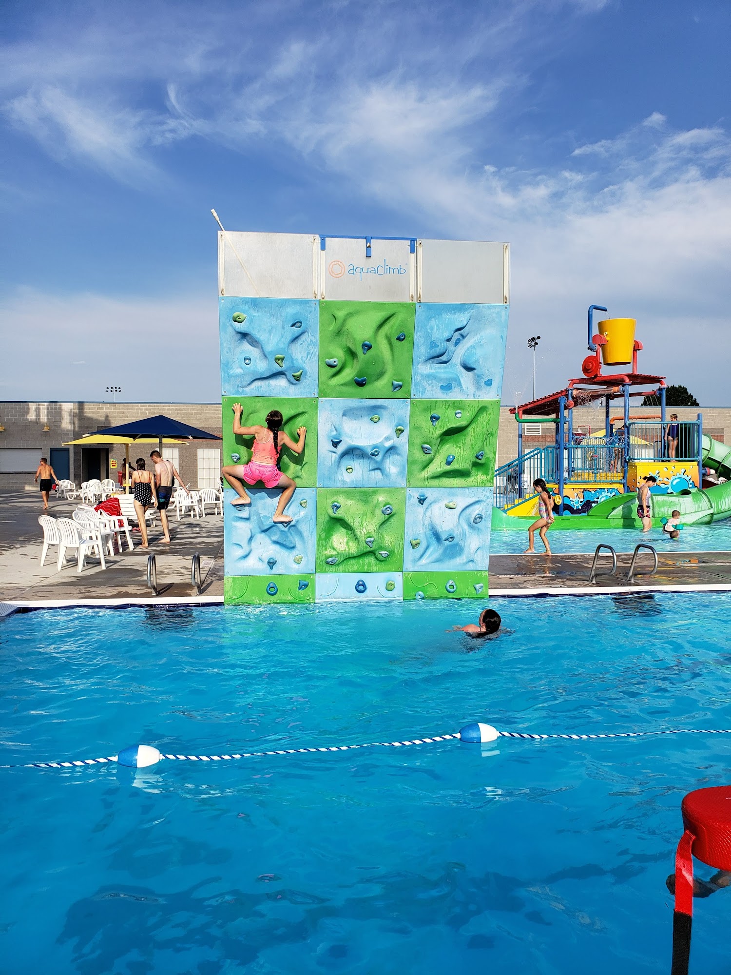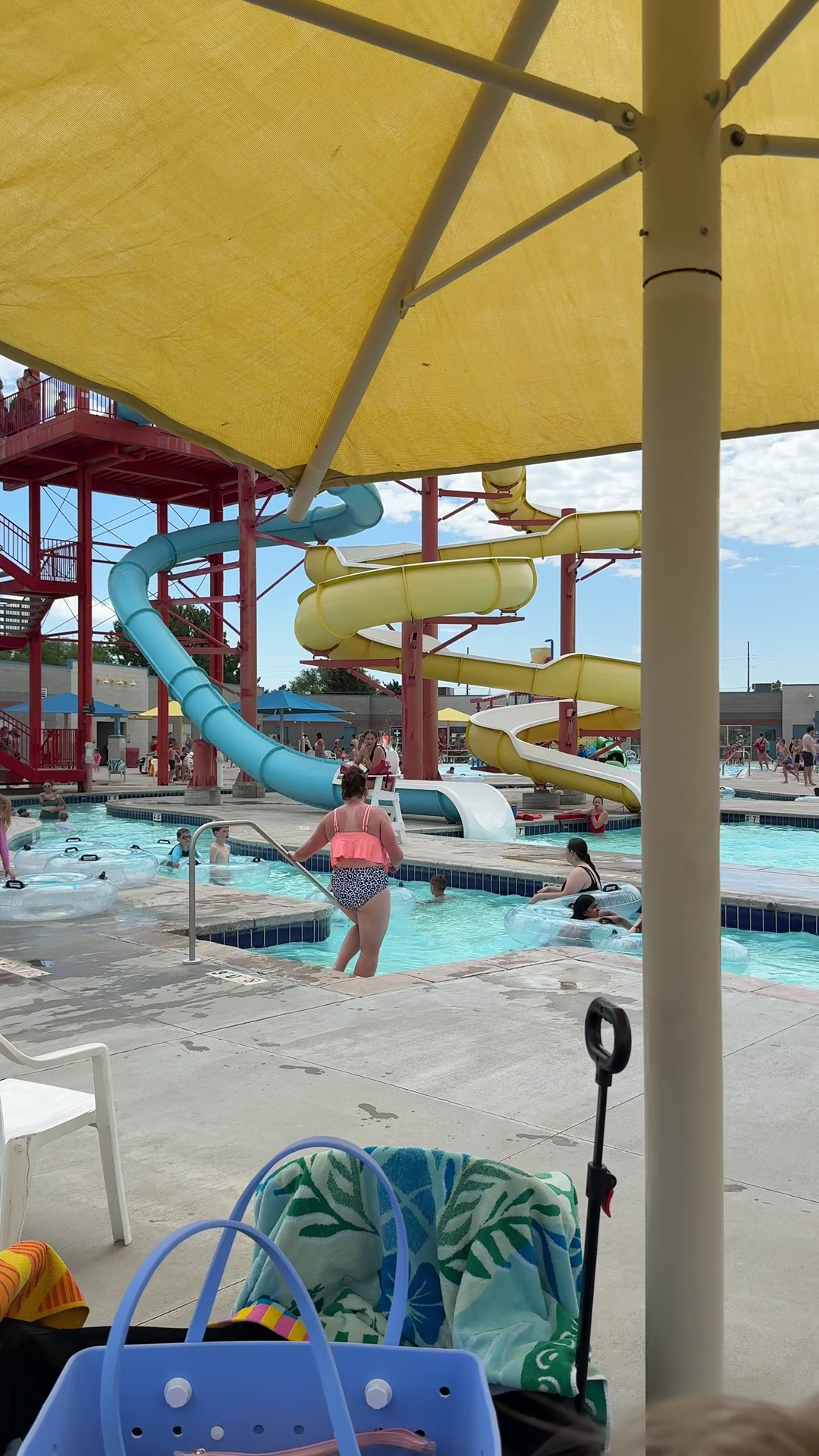 Two water slides. Big lazy river. Water playground for the kids. It's kind of a nice little place to relax for fun.