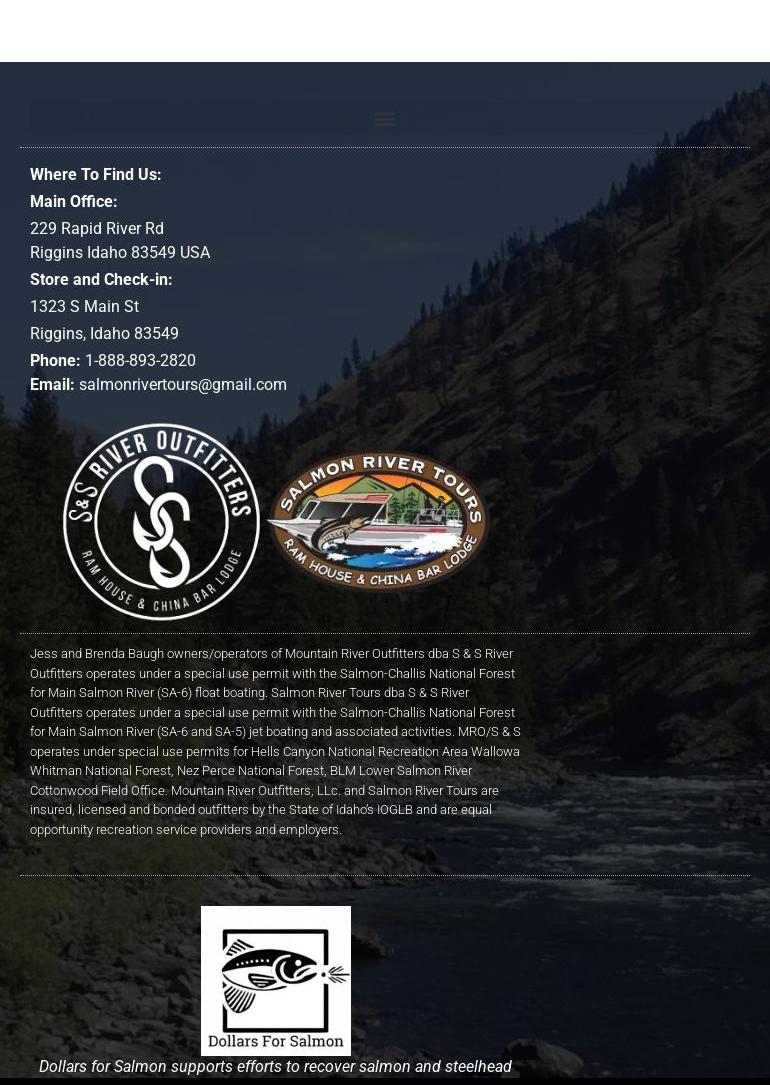First trip up the Salmon River in beautiful Idaho . Choose S & S River Outfitters out of Riggins. My friends and I had a wonderful time. We will return for another great ride. Absolute breathtaking scenery. Thank you again.