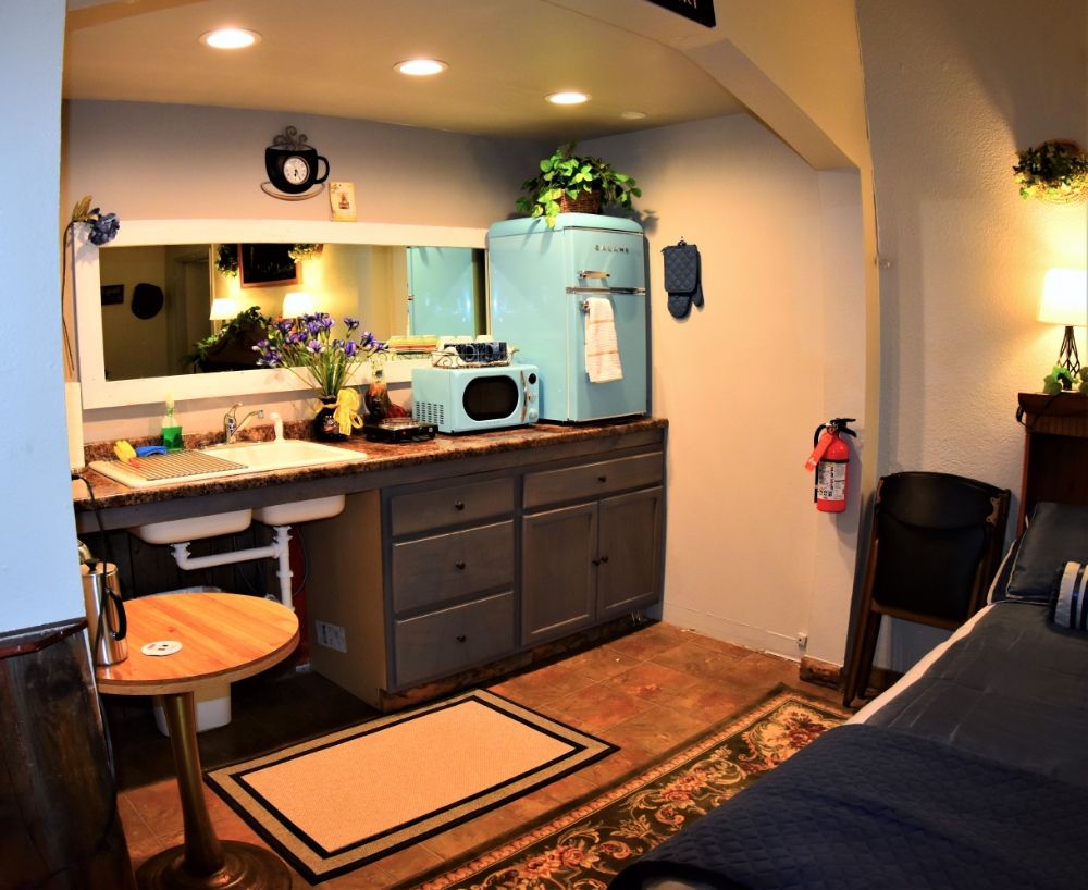 The Salmon River Inn is a great little hidden gem in downtown Salmon. The building is old and run down but the room is cute, beautiful, clean and comfortable. Good coffee and a few pastries was the cozy coffee shop. Walkability is right downtown with ability to walk to everything, to eat, shop or have coffee delivered to room. The bar turned out wonderful and the whole house is furnished with a lot of love. Easy to find even when get 1am. Loved stay, highly recommend.
