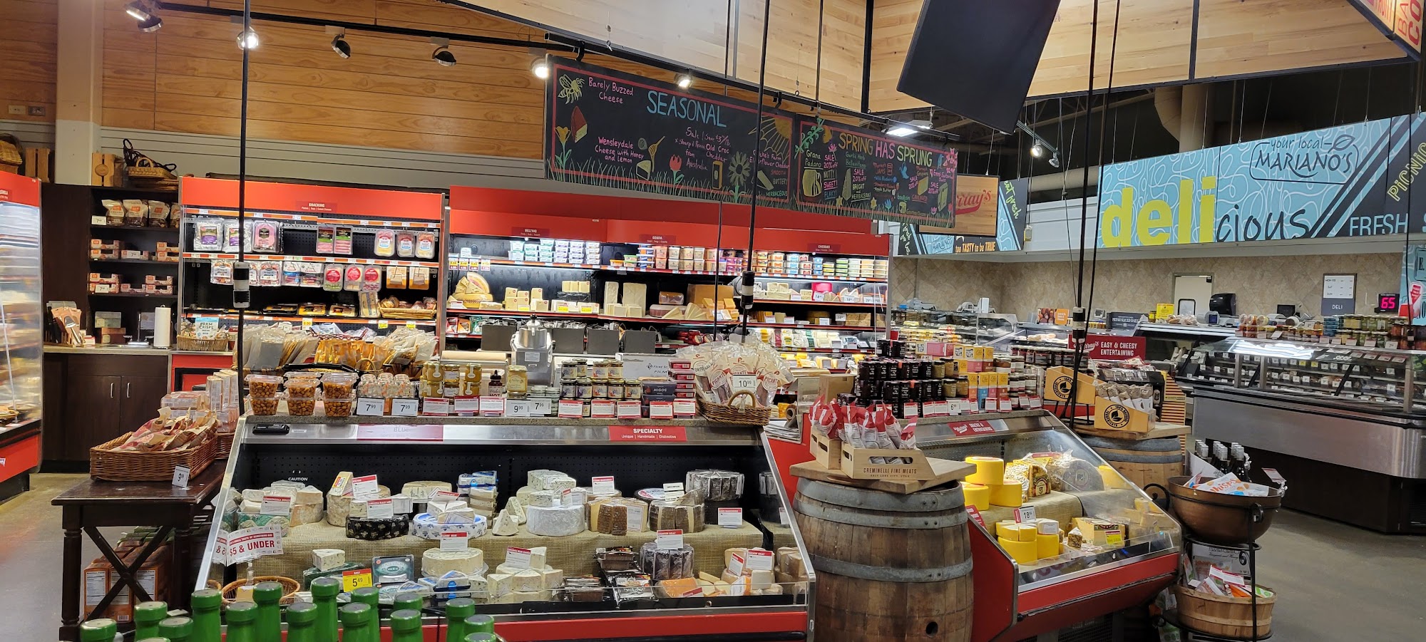 Mariano's is a grocery store known as a food destination and a restaurant disguised as a grocery store. The store is great for cookout needs like mac and cheese and coleslaw, and the kitchen is good, with popular items including mini meatloaves and rotisserie chicken. It features an outstanding butcher shop and a meat counter with higher quality than other area stores. The pharmacy is superior, quick, efficient, and provides exceptional customer service. The store is always clean and orderly, and employees are consistently friendly, helpful, and pleasant. Customers can shop sales and use digital coupons to save. However, there have been complaints about the condition of the bathroom.