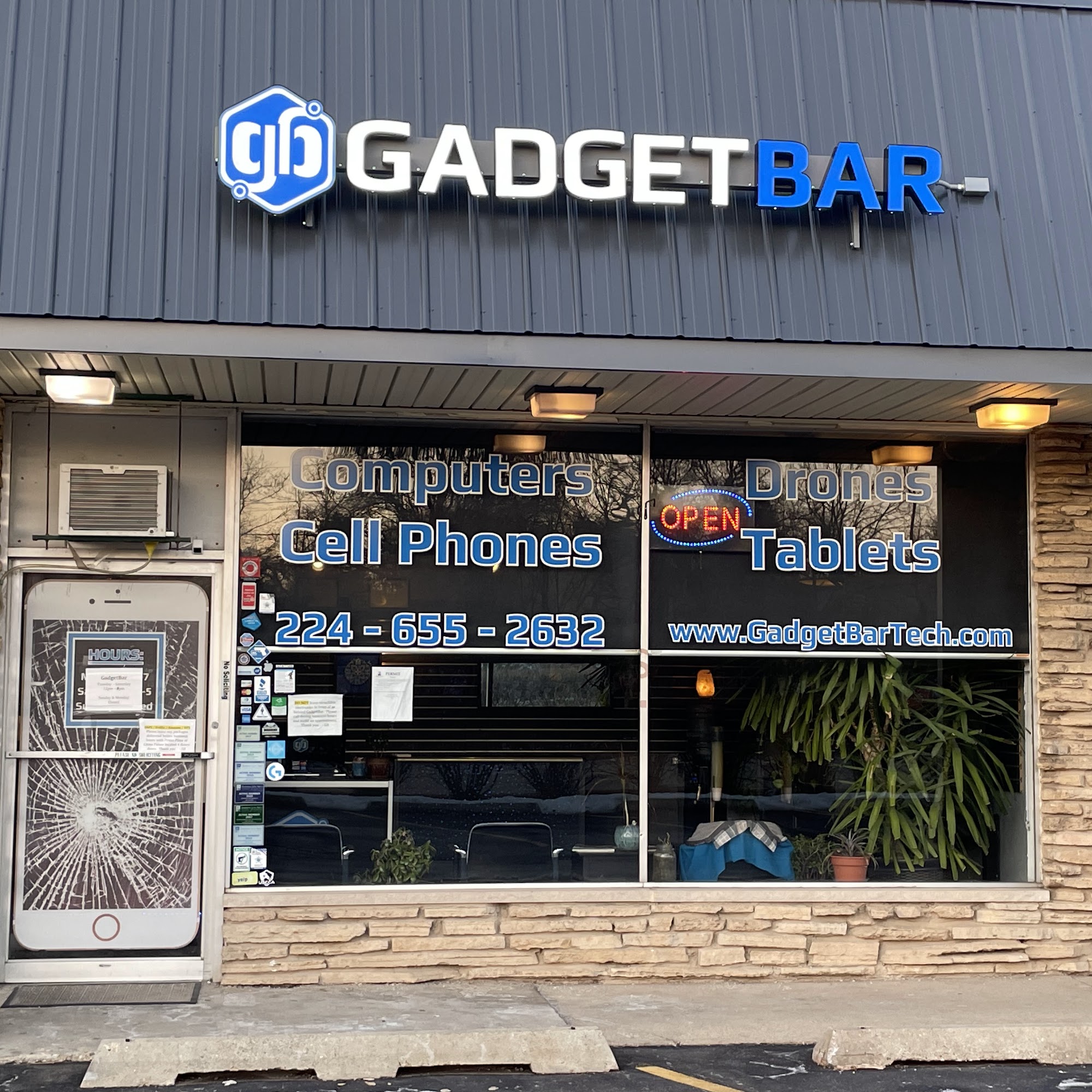 GadgetBar is a full service electronic repair shop. We specialize in the repair of cell phones, tablets, computers, drones and many more Gadgets to name. We service ALL brands ( even the not so popular ones ) and we are usually able to receive major brand name parts the next day. GadgetBar offers a 90 day warranty on all parts and labor, no questions asked. If you have anything that is in need of a repair, than please reach out to us. We’ve done everything from garage door openers, remote controls, record players, cameras, speakers, headphones, tapestries, train sets, suitcases and much, MUCH more. Contact us directly at 224-655-2632 or via email at [email protected]. Thank you for your time and we hope to see you soon! - GadgetBar