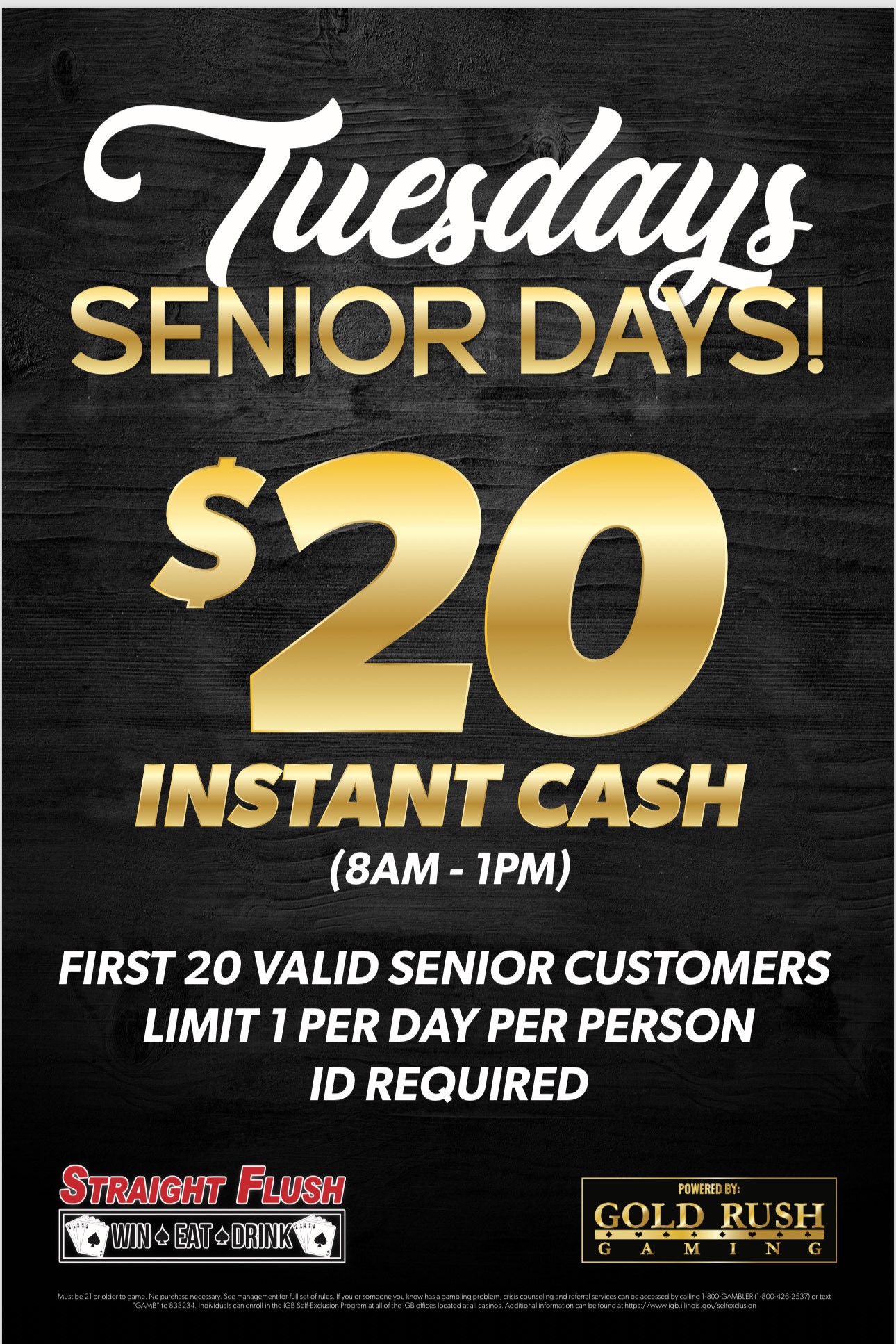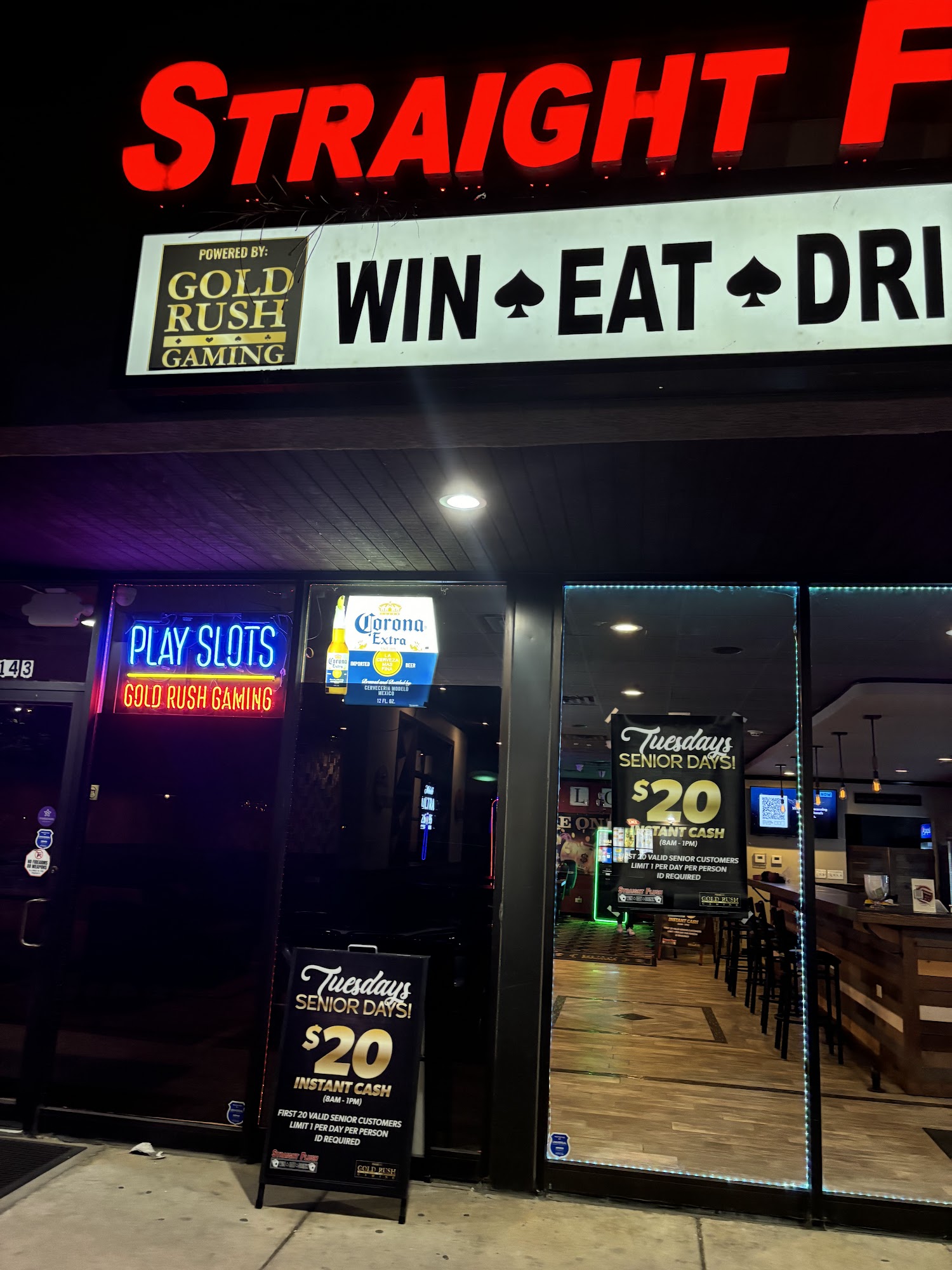 Ask about our Tuesday Senior Days (8am-1pm) to receive $20 INSTANT CASH! Come WIN, EAT, & DRINK with us! Straight Flush, Inc. is a premier casino and gambling establishment located in Bartlett, IL serving the Greater Chicago Area. We specialize in newly upgraded machines, slots, poker, and video poker. We also offer pizza, wine, and beer to enhance your gaming experience. Our experienced staff is committed to providing the highest quality service to ensure your gaming experience is second to none. Founded in 2021, Straight Flush, Inc. is the go-to destination for gambling and entertainment in the area. We look forward to providing you with an unforgettable experience that will have you coming back for more.