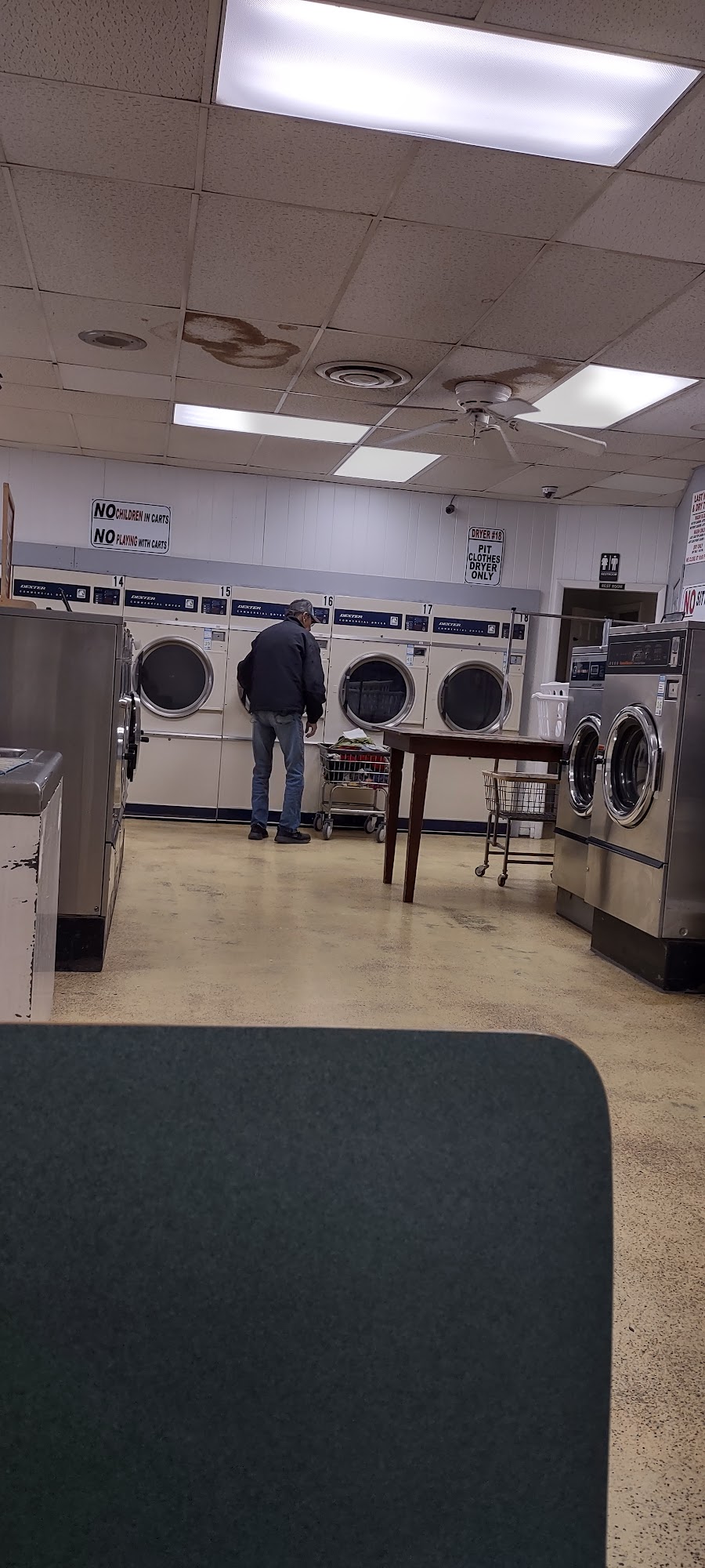 Full service laundry with full time attendant. Wash, dry, fold, and ironing service. ATM on site. We now accept payrange, a mobile pay app with your phone. We have vending machines and Illionis gaming machines. Our washing machines consist of regular top loaders machines allway up to 60lb washers for those bigger loads and 18 dryers to get your laundry done quickly and efficently! Clean family enviroment