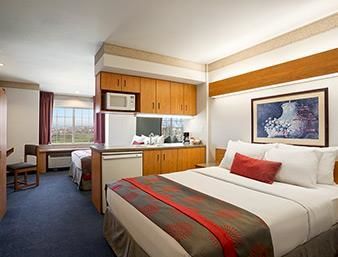 Whirlpool tub, fantastic, mini fridge in the room, comfortable bed, warm blankets, pillows are kind of small but not a big deal.