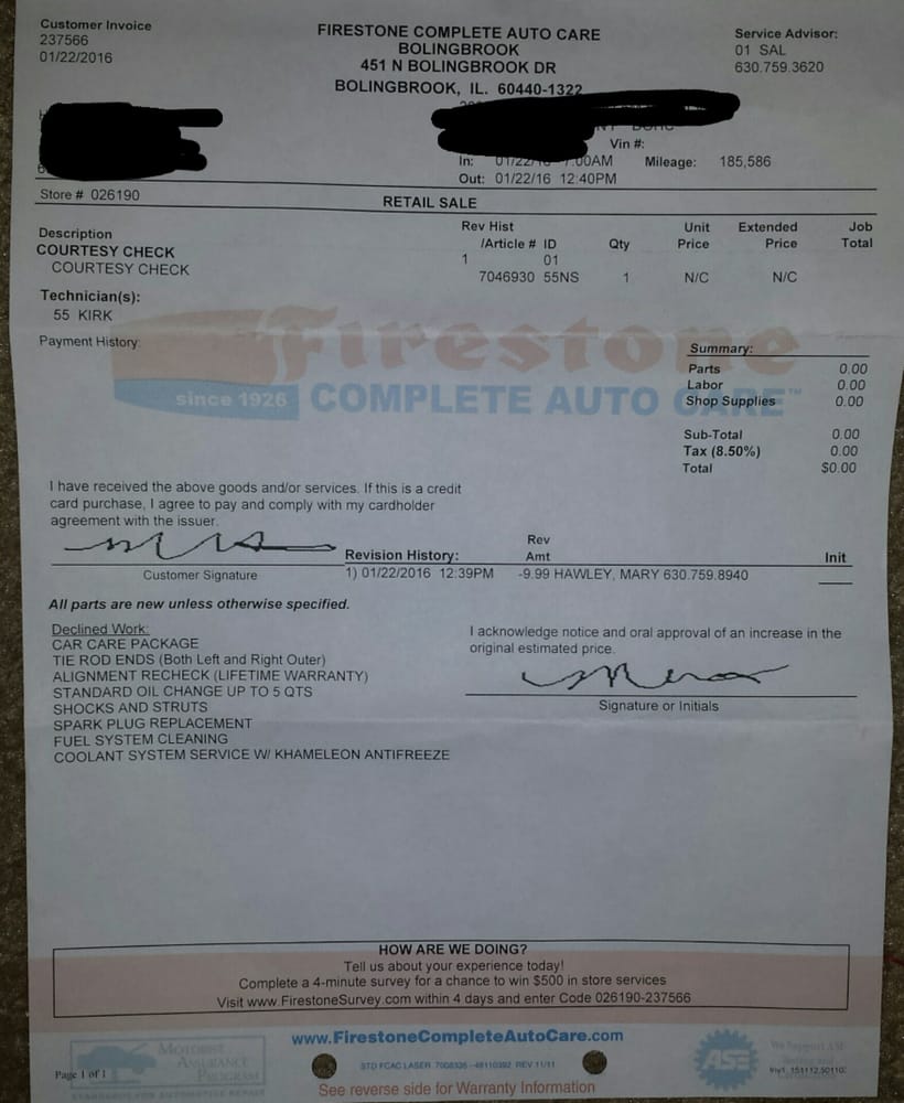 Helping our neighbors since 1926, Firestone Complete Auto Care is your one-stop shop for your vehicle needs - from standard maintenance to tires and repairs. Discover exceptional auto care service at Firestone Complete Auto Care in Bolingbrook, IL located at 451 N Bolingbrook Dr. From tire sales to maintenance and repairs, we offer comprehensive solutions for every make and model. Keep your vehicle running smoothly with services like oil changes, brake inspections, and engine repairs. If you're a Bolingbrook resident and want to experience reliable and affordable auto care tailored to your unique needs, schedule an appointment online and or visit us today so our expert team can take care of your vehicle and get you back on the road. The staff was very polite and friendly, they explained everything clearly, and customers didn't see this level of good employees in other places. The service was fast, and the team identified the source of the leak. Customers were happy with the kind and courteous staff, who took them at their appointment time and completed the work quickly.