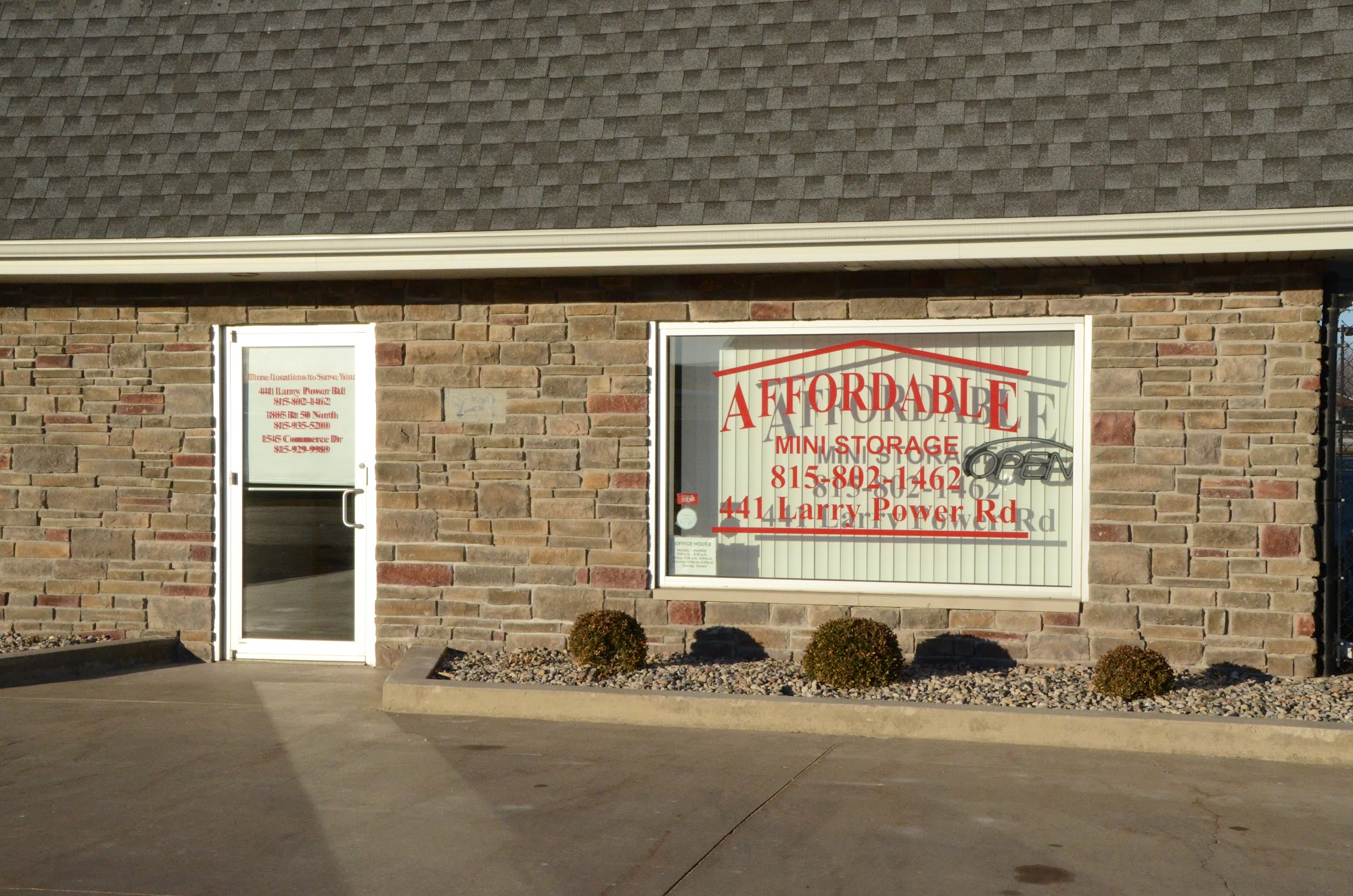 We are a well established 4 location storage facility located in Bourbonnais, Illinois. Family owned and operated since 1997, we thrive to provide you with the highest quality of customer service and state of the art security technology. Cleanliness and well maintenance is high priority at Affordable Mini Storage. Stop in for a red carpet tour or call one of our professional, friendly office staff members to reserve your unit today! We Offer: -24 hour surveillance systems -Personalized key-code entry system -Onsite staff and office hours -Fully fenced and lit perimeters