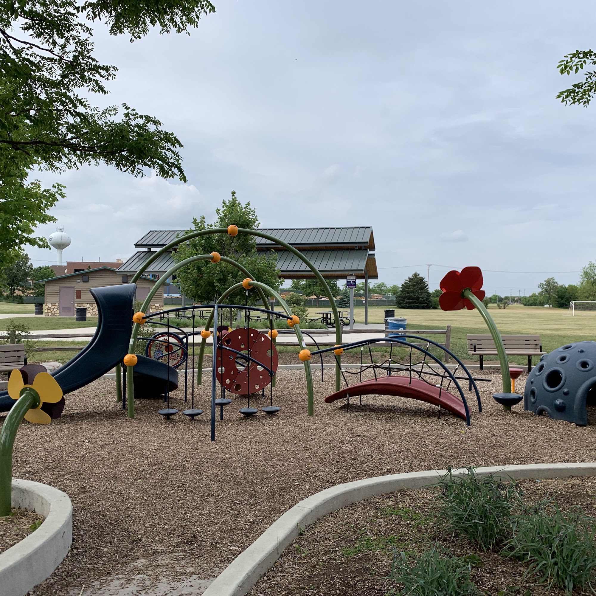 I like the seasonal splash pad & bathroom access. Large gazebo with ample tables/seating. The playground is large and appropriate for different ages. Several soccer fields. Grounds are well maintained.