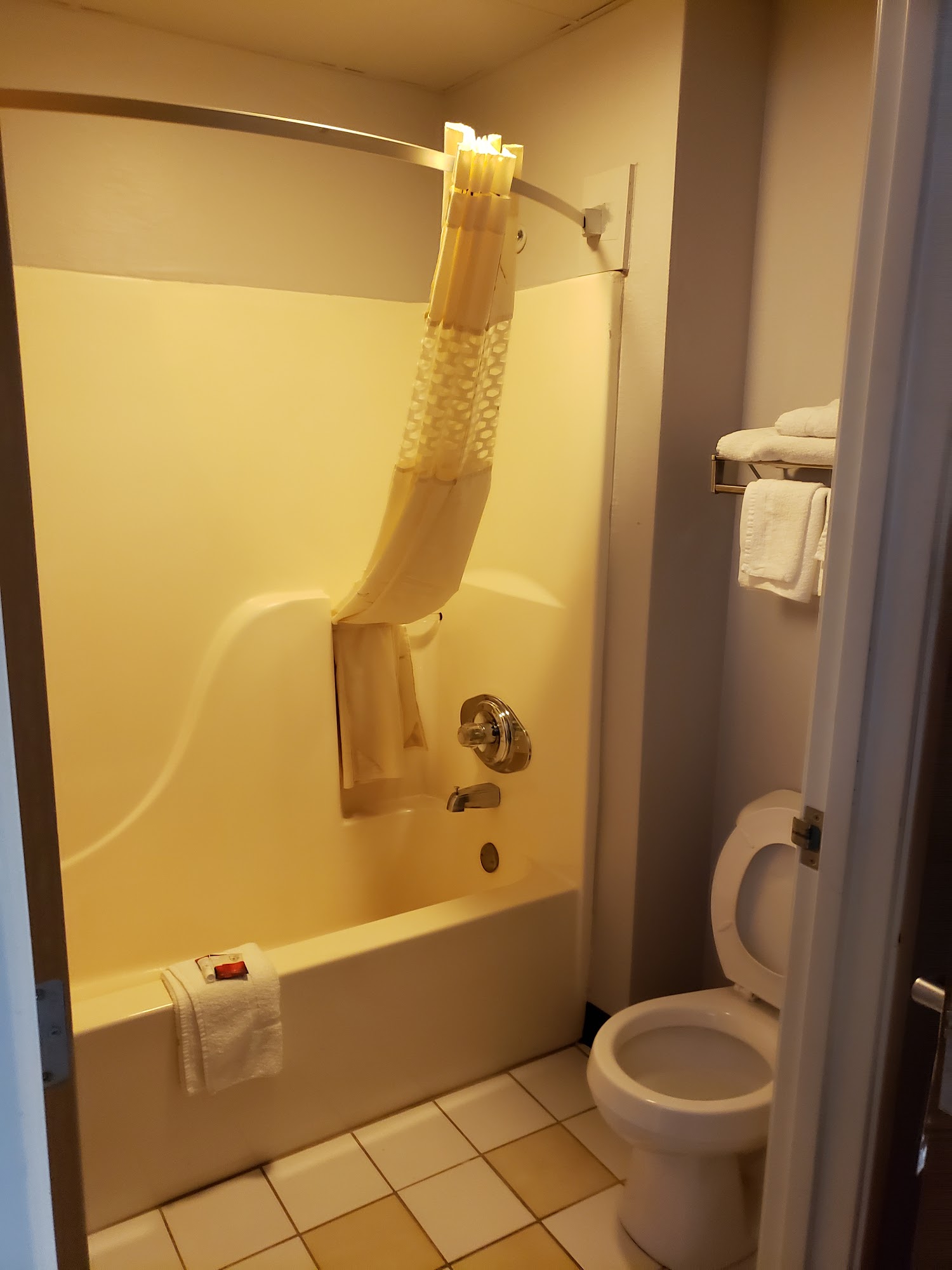 Super 8 by Wyndham Chenoa is a comfortable and clean hotel that offers a pleasant stay for guests. The staff is generally friendly and helpful, with many reviews mentioning respectful front desk service and accommodating employees. The rooms are well-maintained, with some guests noting updates and modern decor, while others appreciate the cleanliness and comfort of the beds and overall space. The hotel provides basic amenities, including free breakfast with Belgian waffles and essentials like a fridge and microwave in the rooms. It is conveniently located in a small town, close to gas stations and fast food options, making it suitable for travelers needing quick access to nearby areas. Guests have found the prices fair, especially when compared to other hotels during events like fairs, where some nearby places increase rates significantly. While check-in can sometimes take a bit longer, overall, visitors find the hotel a reliable and pleasant place to stay, especially for those needing a quick, comfortable stop or an emergency overnight.