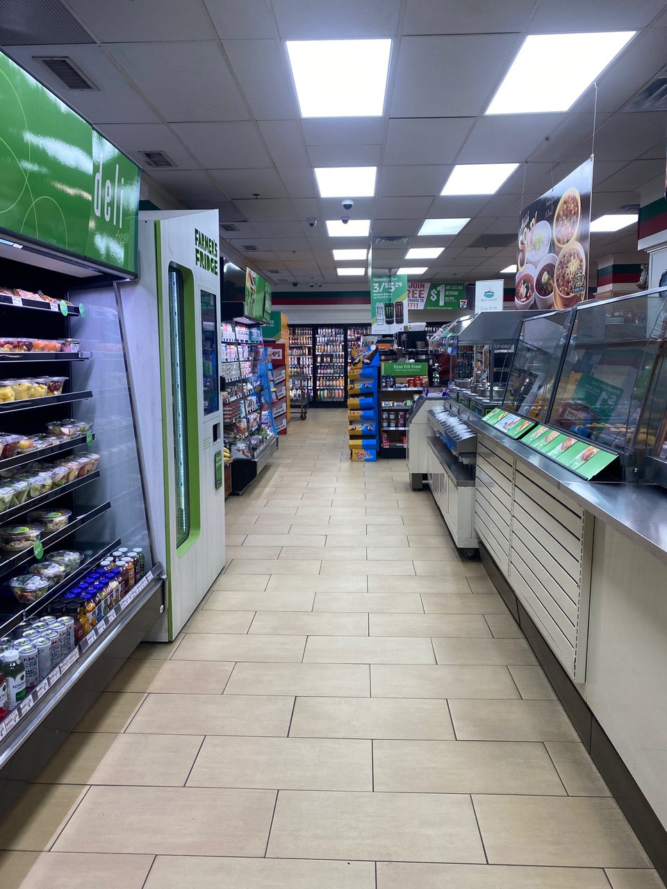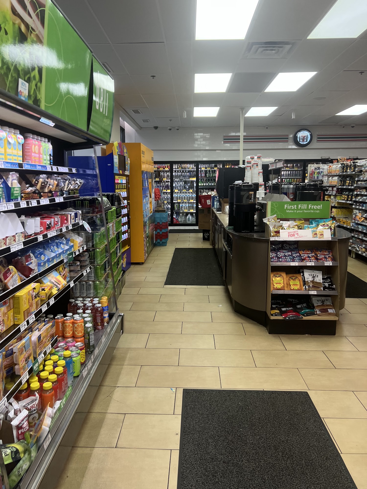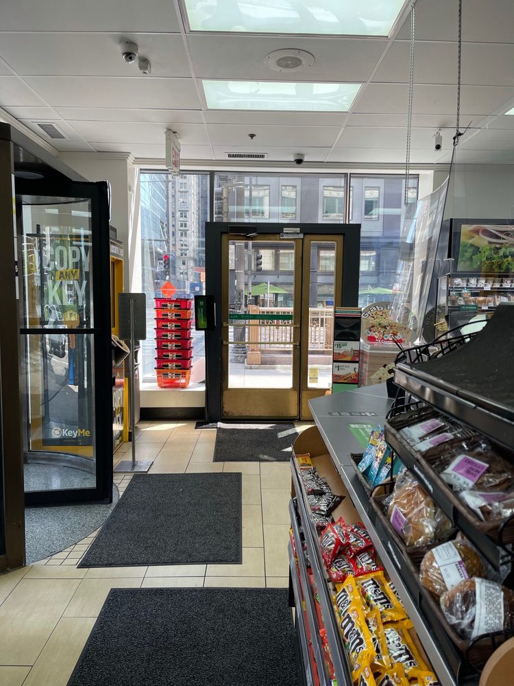 7-Eleven is a convenient store located at a prominent corner, offering a broad and extensive selection of products. Customers can enjoy custom-made coffee from self-serve stations, allowing them to craft their perfect cup. The store provides fresh, high-quality items such as fruit, salads, yogurts, water, juices, snacks, and ready-made meals, making it a great option for on-the-go needs. Despite being smaller than some locations and having higher prices on certain items, the store offers fast, delicious hot foods and a variety of products at fair prices. Security personnel are present inside, ensuring safety for shoppers. The store's location attracts a diverse crowd, especially at night, but remains a reliable spot for quick purchases, whether for drinks, snacks, or quick meals. Customers can also join the 7Rewards program by downloading the app for exclusive perks and promotions.