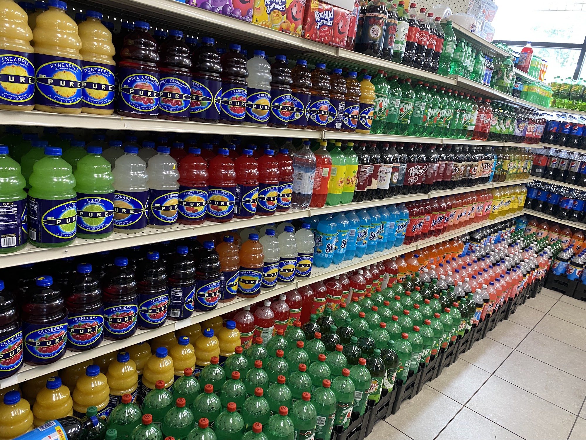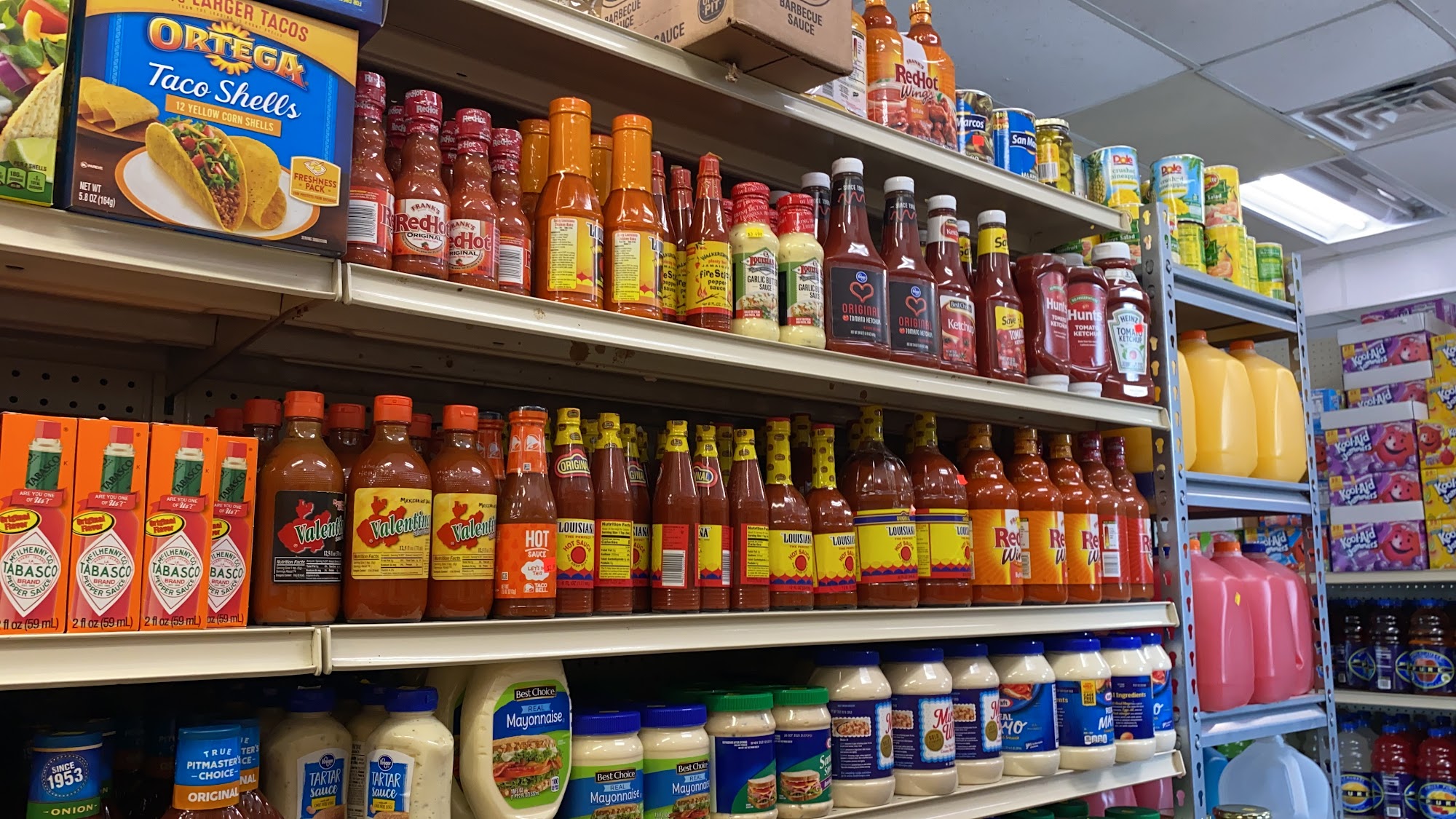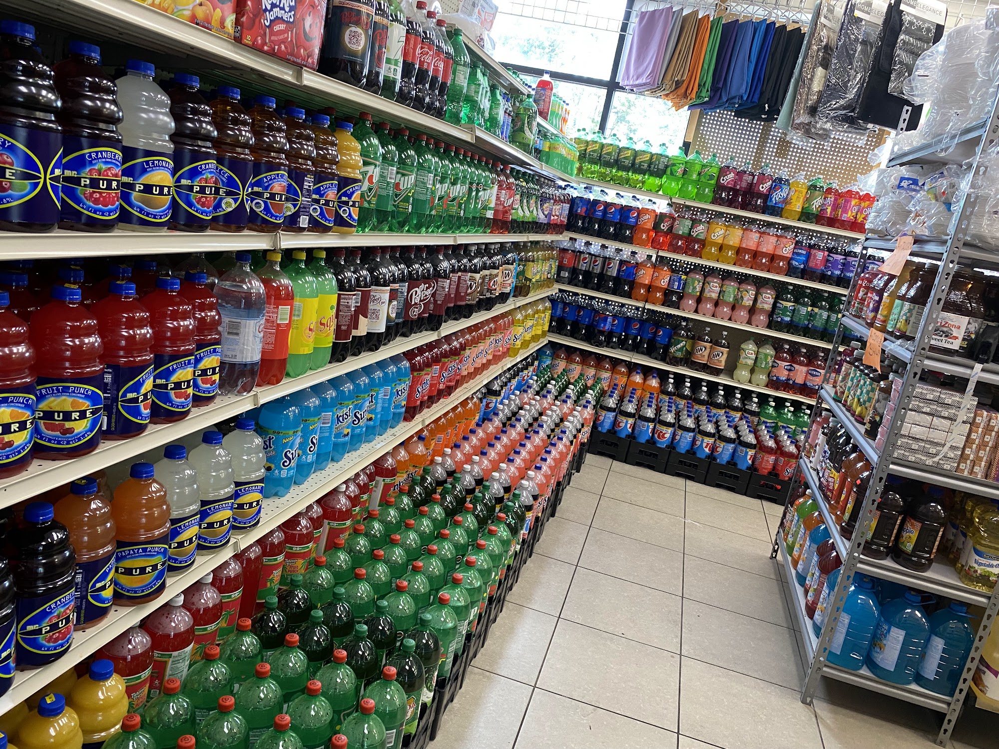 Full line off grocery FRESH chicken and fish and steak. FRESH salad sandwiches and fruits. Fruit cups Corn in cup Slushy Tobacco accessories. All tobacco products. Cold drinks. Coffee. Candy 2/$99c. Snacks. Frozen food. Produce. Copy keys. Phone minutes. Speaker.