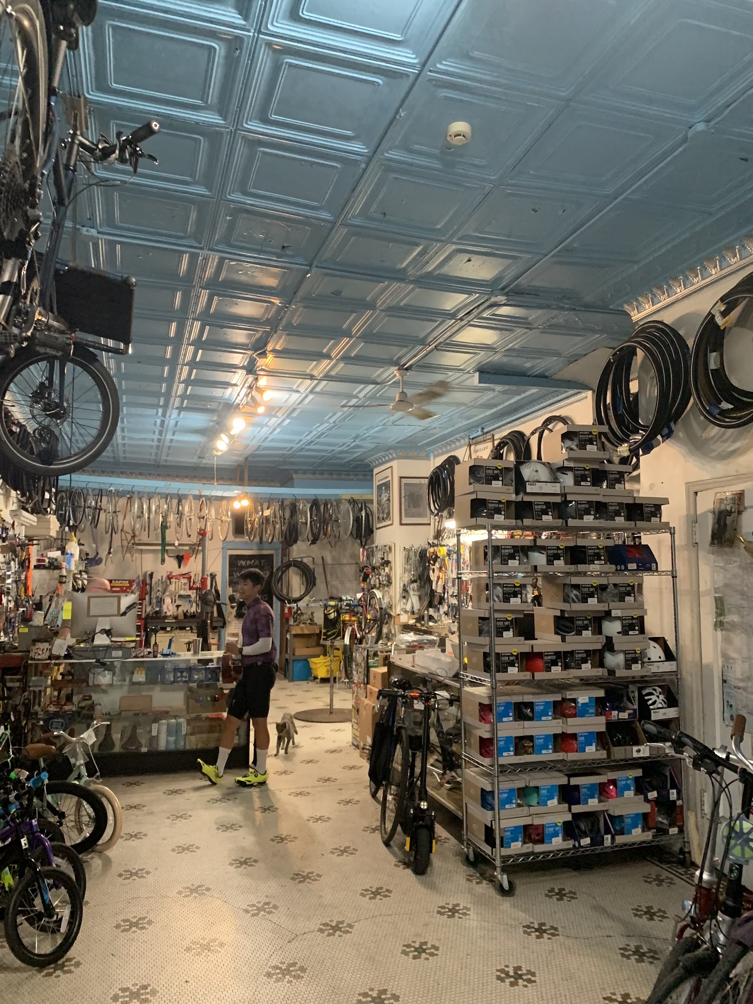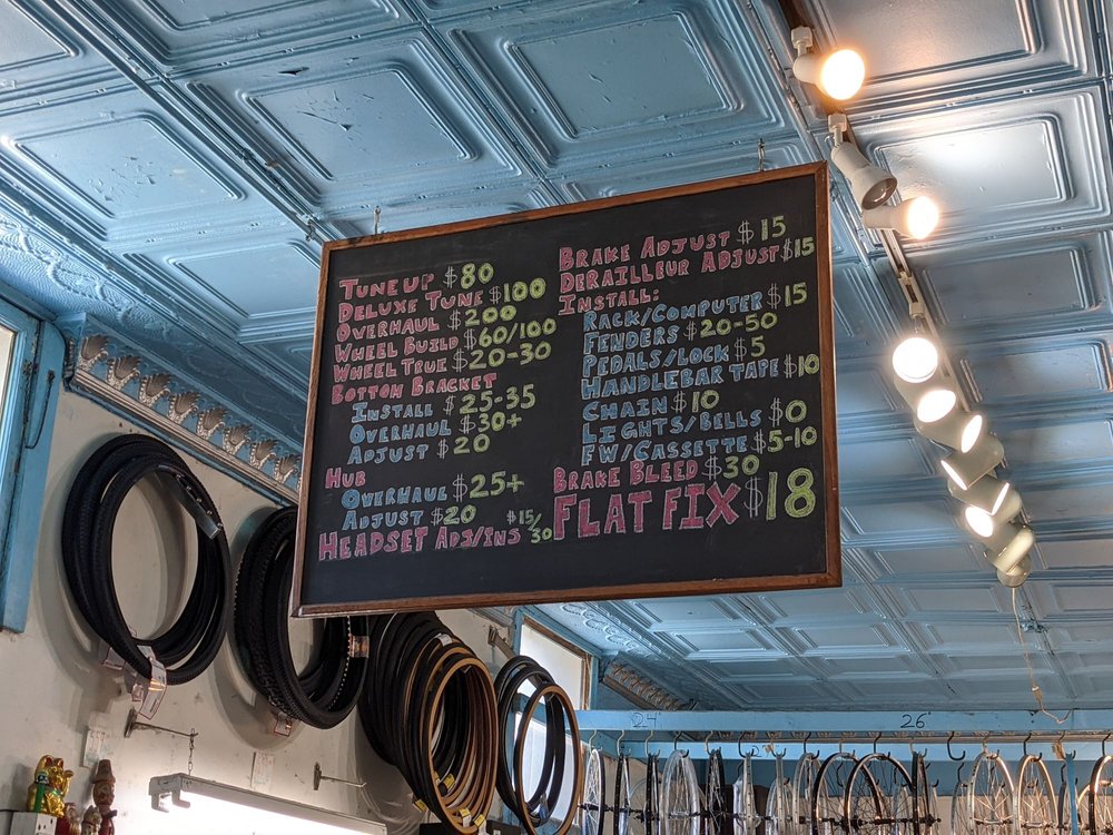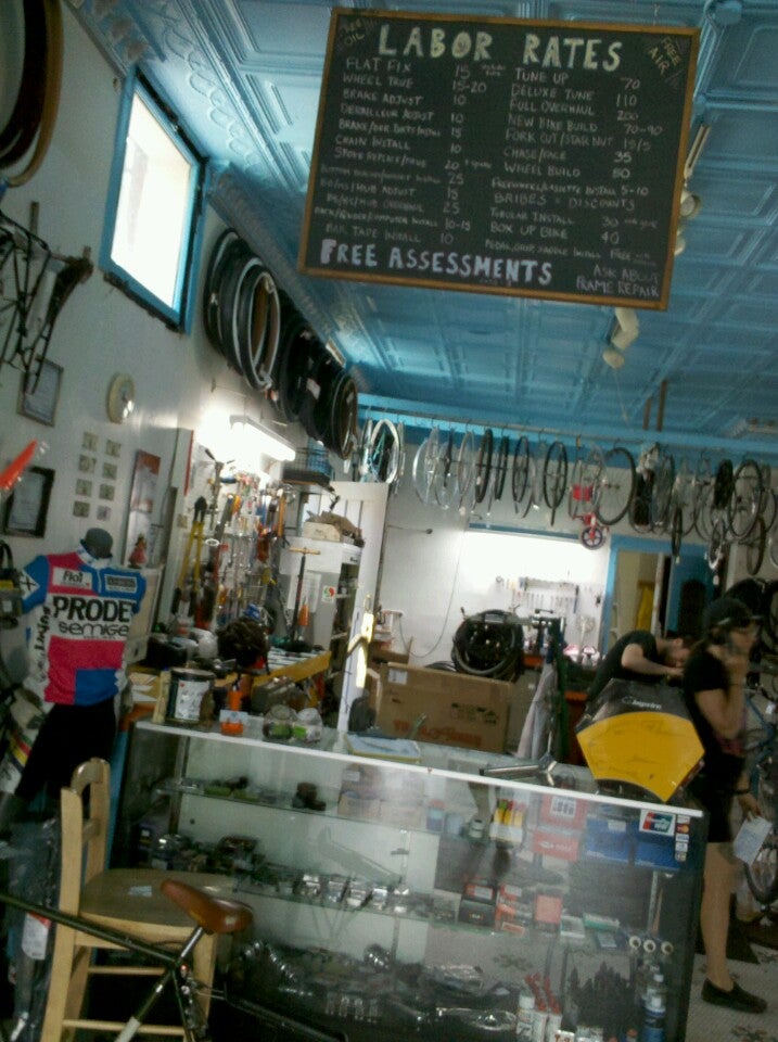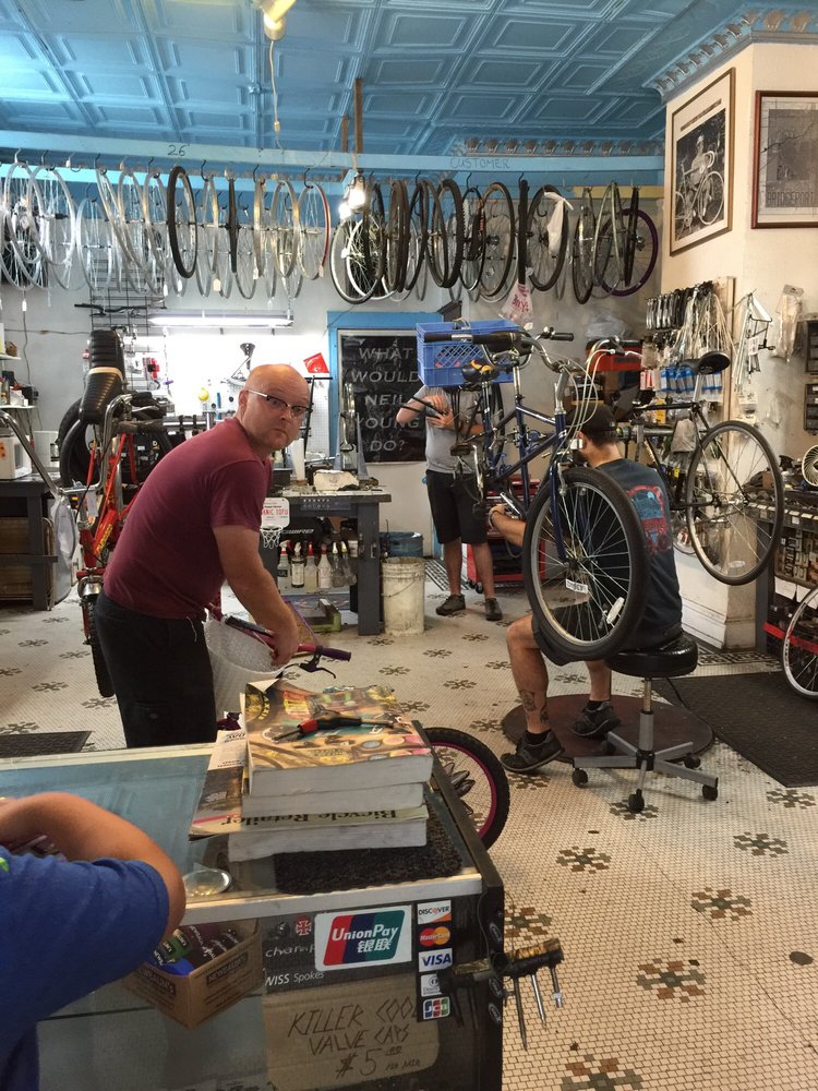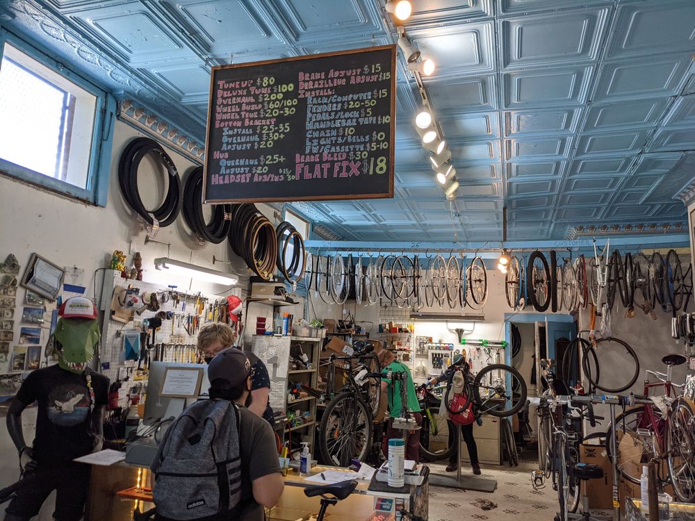 Blue City Cycles is a nice local bike shop and a great neighborhood bike shop. It is fairly small without a huge selection of new bikes, but it has a good amount of tools, parts, tires, and a nice variety of accessories. The staff is helpful, knowledgeable, friendly, and very reasonable. They provide great customer service, are honest, and are willing to help with bike issues, fixes, and ideas, even on things like a scooter tire. Their knowledge of the local paths and routes is excellent. They offer fast turn-around and are open until 6pm. There is also a bike shop cat or two.