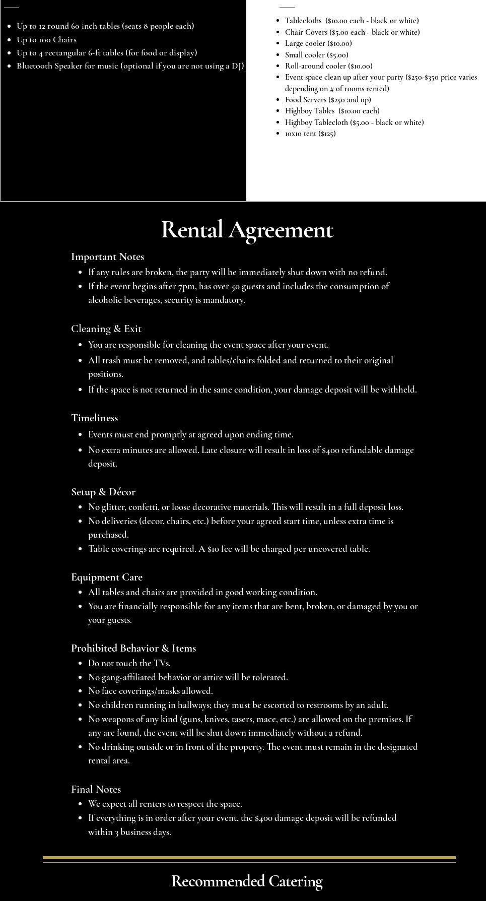 Beening a out of towner it is very hard to find a good venu. The venue was clean Management was amazing. Well definitely recommend and would use you again