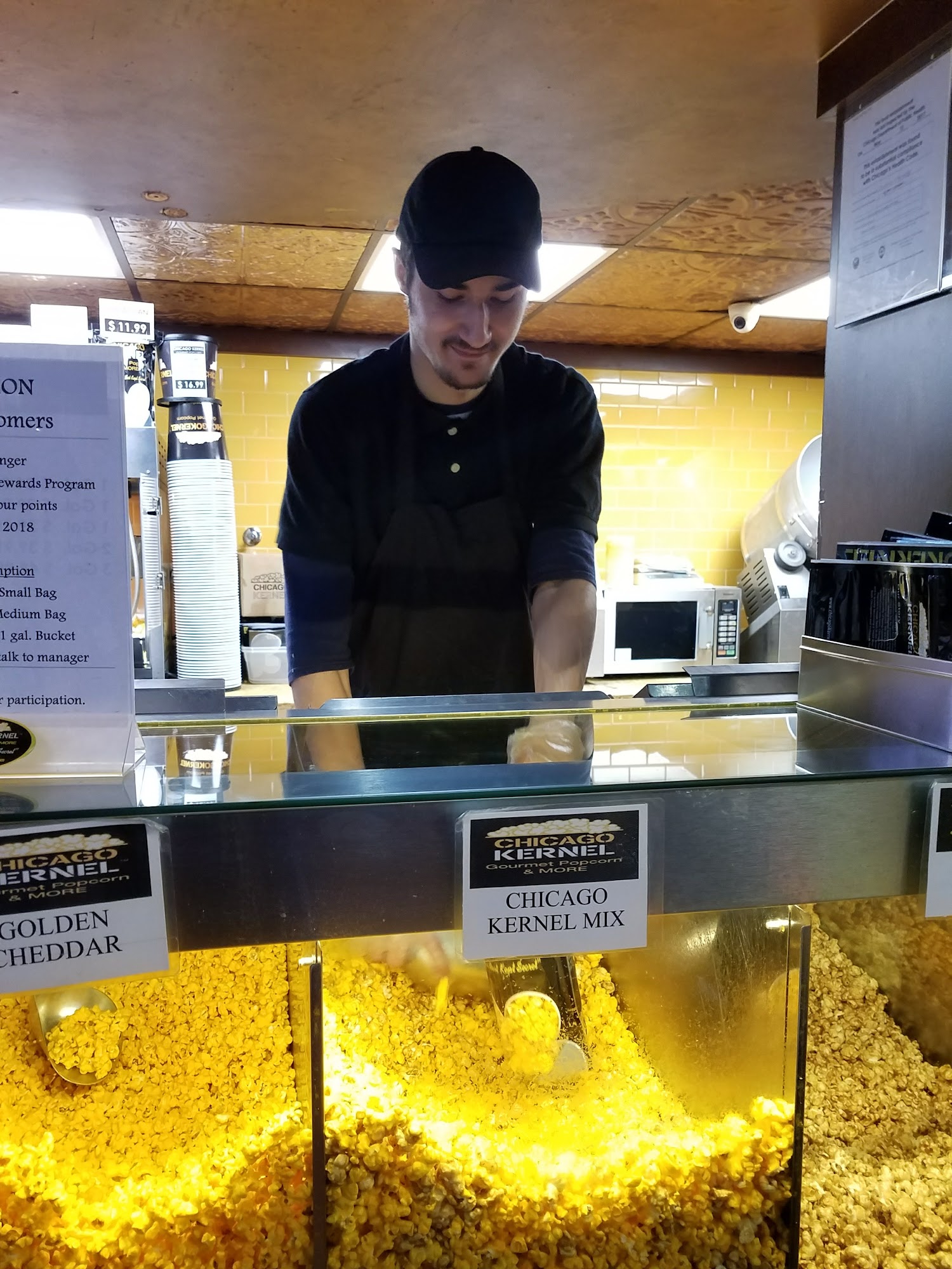 The popcorn from Chicago is addictive and fresh, shipped from Chicago to Houston. Many flavors are the creamy Carmel & Cheese Chicago mix, White Cheddar is cheesy and salty, Icee, blueberry, cherry and strawberry lemonade. The location is on your way to the metra tracks and the price is reasonable. The smell of burnt popcorn spread throughout the station, a charred kernels that many are better than urine. It is getting a five star rating.