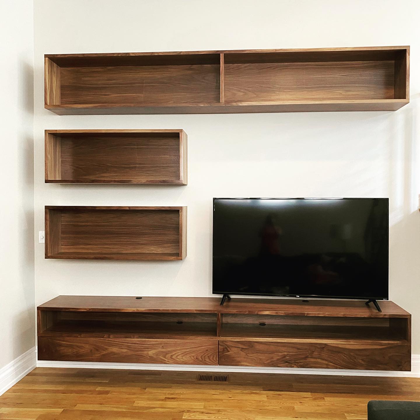 We had a small office remodel that turned out great. The space is functional and warm, despite a small footprint with two entry doors.