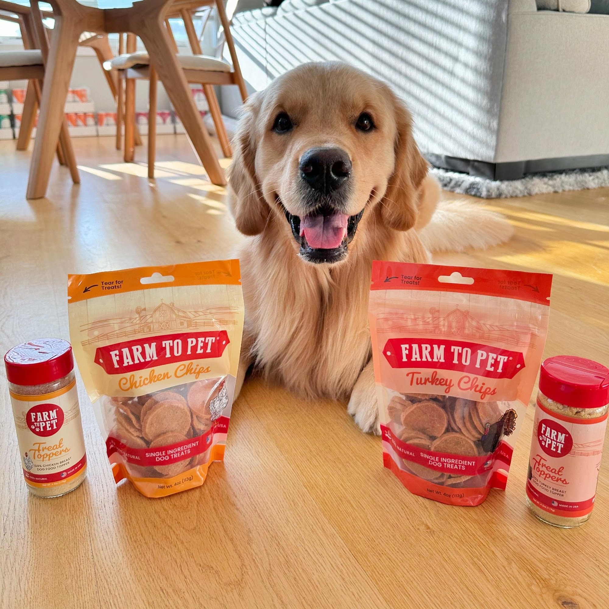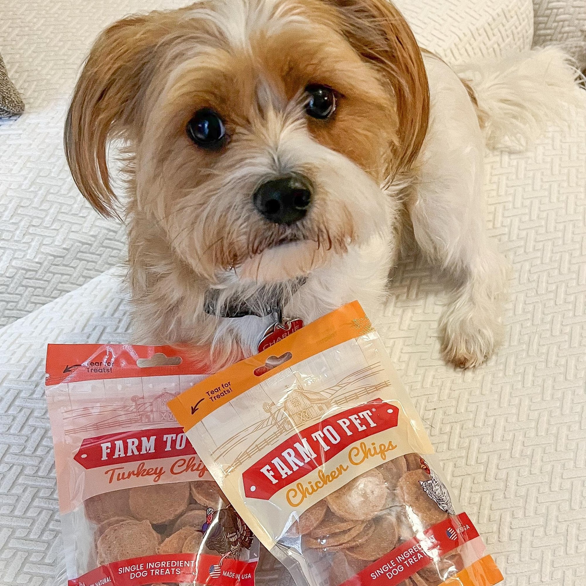 Farm to Pet offers healthy, single-ingredient treats and organic chews for dogs and cats. All treats are made with human-grade chicken, beef, turkey, and fish, and are free from additives and fillers. Pet owners appreciate that these treats are nutritious, well-packaged, and easy to break into smaller pieces for training or rewards. Many pets love the crunchy texture and favorite flavors like chicken, turkey, and beef, often losing their minds when the treats are opened. The treats are especially suitable for dogs with sensitivities, as they are the first options that avoid making pets sick. Customers frequently mention their pets' obsession with these snacks and how they help with focus during training. Overall, Farm to Pet is trusted for quality, USA-made treats that are both simple and satisfying for pets.
