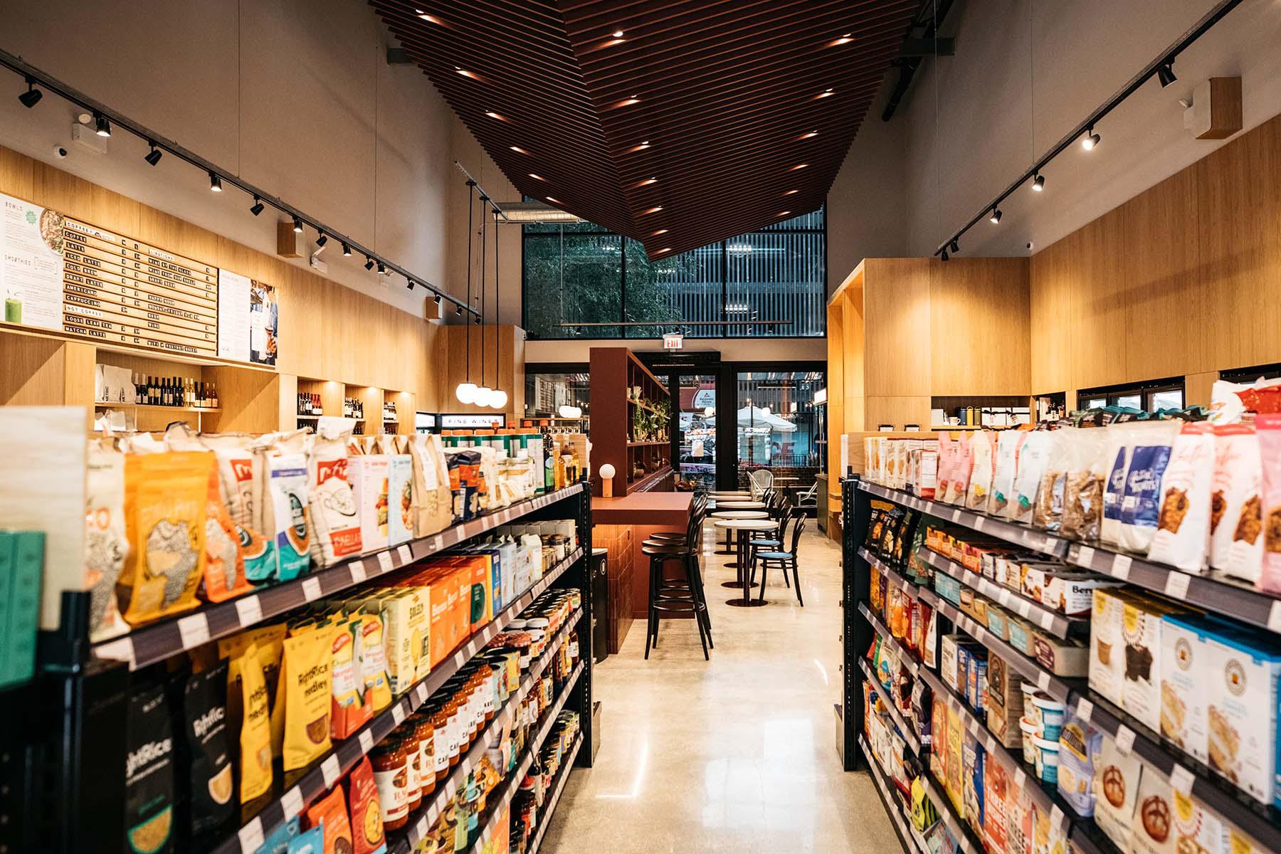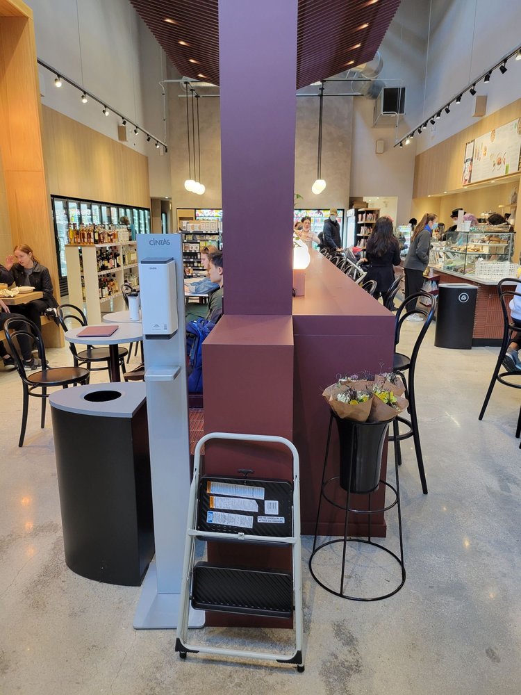 Foxtrot is a corner store and delivery market that offers a curated selection of local goods, wines, and everyday essentials. Customers can enjoy a cup of coffee in the shop or have their favorites delivered in under an hour. While the staff is described as attentive, professional, and helpful, the location can sometimes feel understaffed, leading to longer wait times. The La Colombe nitro draft latte is noted as being too foamy, with more foam than coffee. The store is praised for its cleanliness, wide selection, and convenient location near the Viceroy Hotel. Customers can find a variety of options, including breakfast sandwiches, Italian pizza, sushi, salads, and charcuterie plates. The outdoor seating and relaxed environment make Foxtrot a popular spot for studying, socializing, and enjoying the sunny weather. The Foxtrot app offers benefits like $10 off the first order and a free monthly cafe beverage for members. While the music is sometimes played too loudly, the overall experience is positive, with ample seating, outlets, and friendly staff.